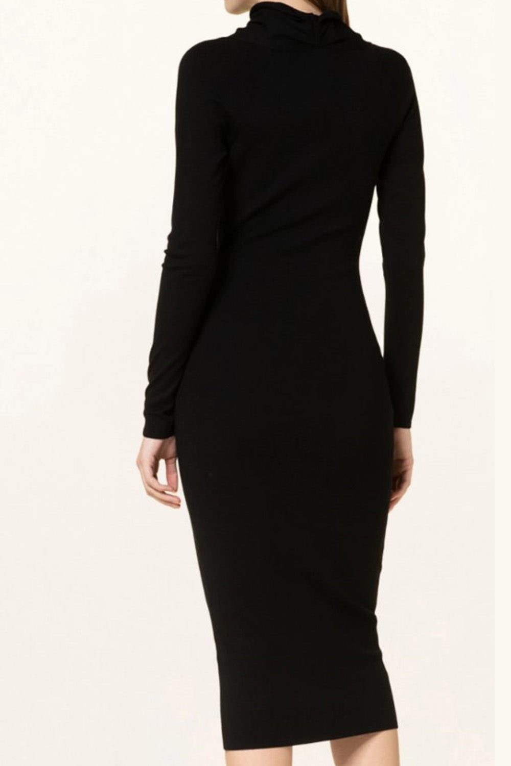 Type-Luminous Black Dress, Color-Black, Neck type-High neck, Sleeve Length-Full sleeve, Fit-Body fit, Fabric-Poly Lycra