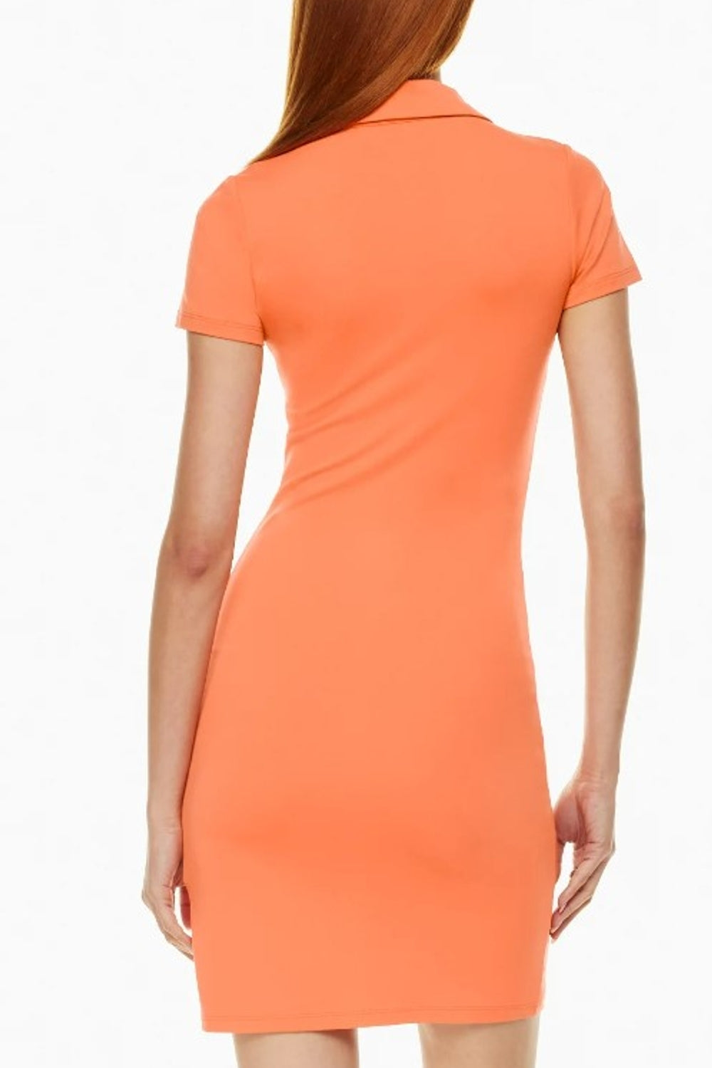 Type - Luminous Orange Dress, Color - Orange, Neck type - Collar , Sleeve Length - Half Sleeve, Fit - Slim, Fabric - Poly Lycra