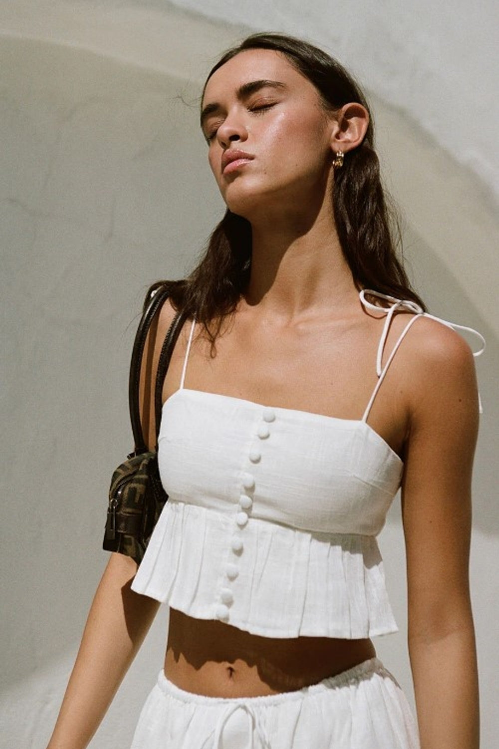 Type-Magnitogorsk White Top, Color-White, Neck type-Straight neckline, Sleeve Length-Sleeveless, Fit-Body Fit, Fabric-Rayon