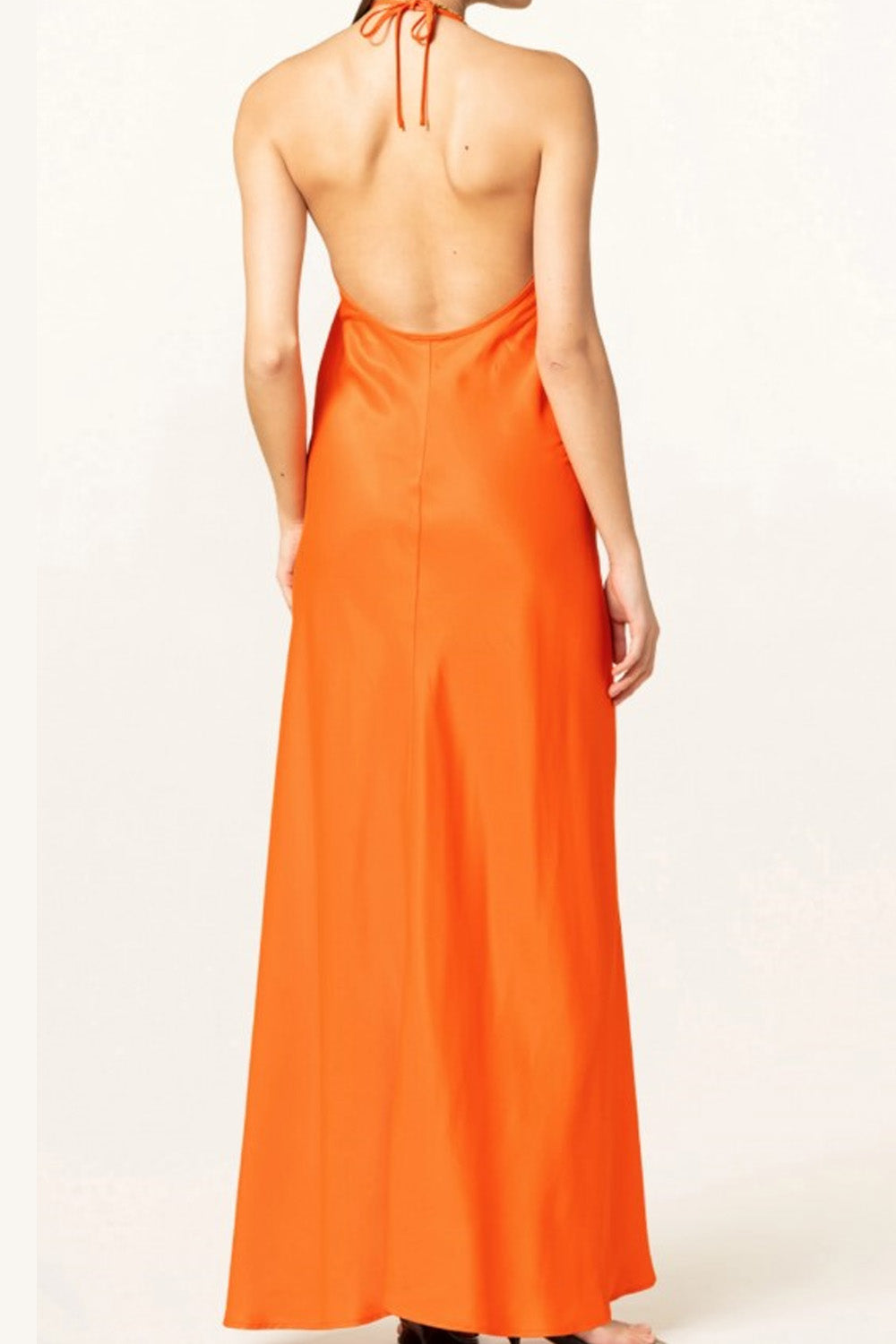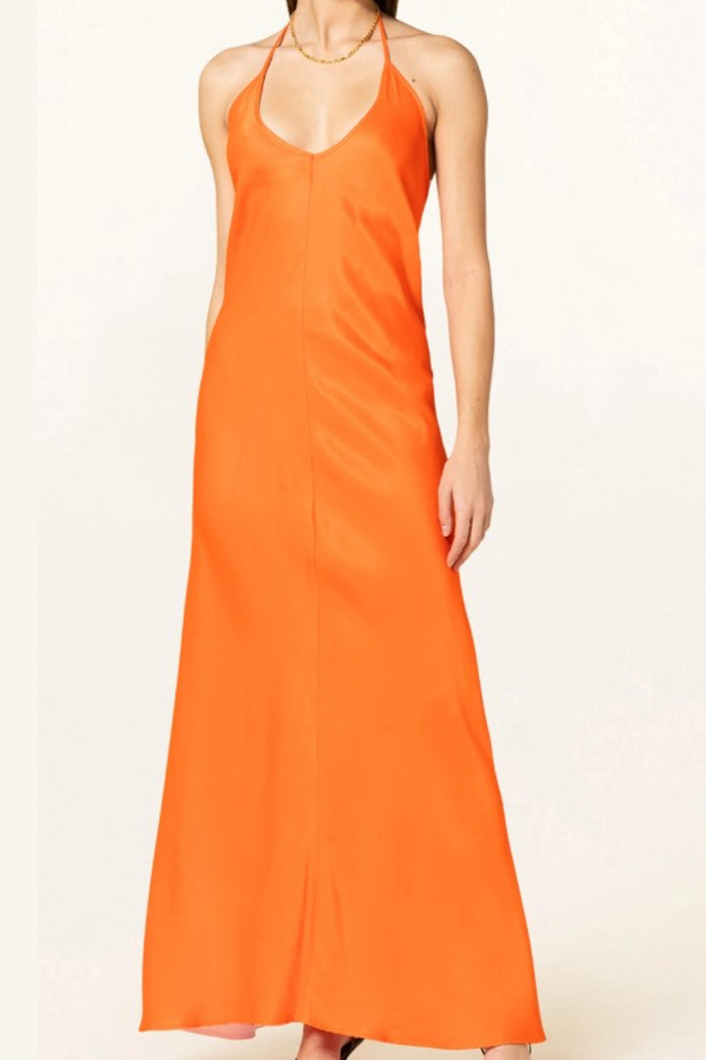 Type-Marvels Orange Dress, Color-Orange, Neck type-scoop neck, Sleeve Length-Sleeveless, Fit-Regular, Fabric-Satin Lycra