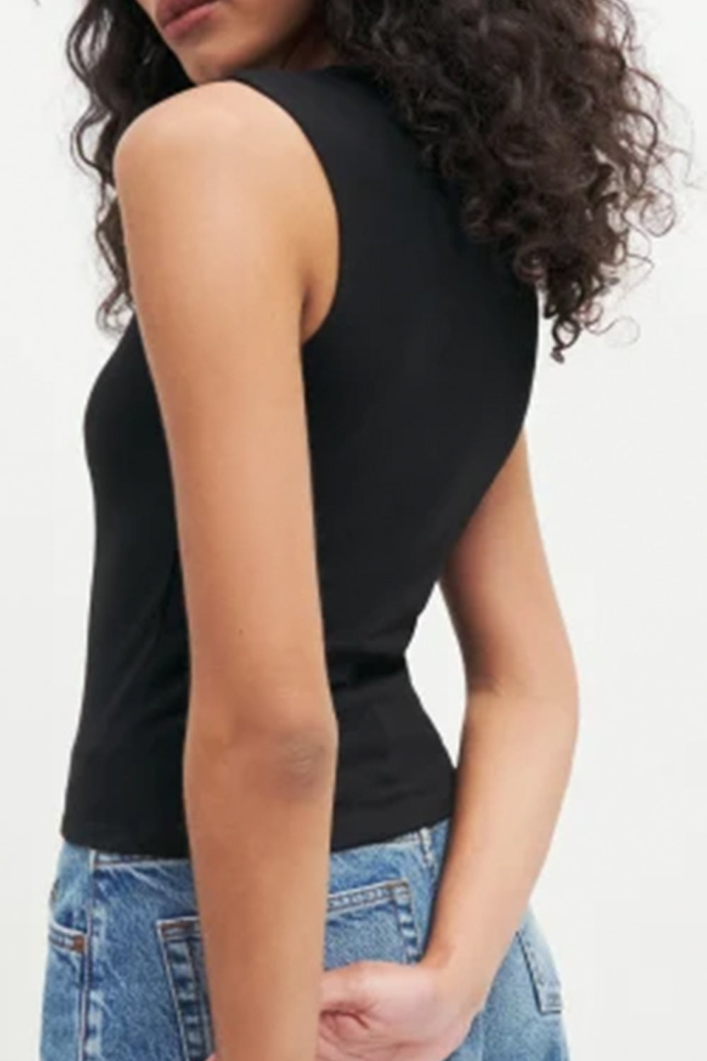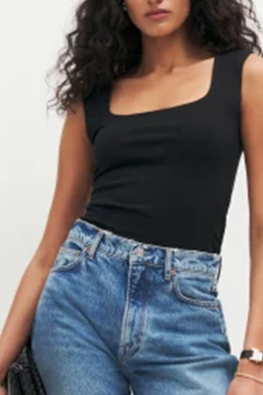 Type-Marylebone Black Top Color-Black Neck type-Scoop Neck Sleeve Length-Sleeveless Fit-Body Fit Fabric-Single Jersey