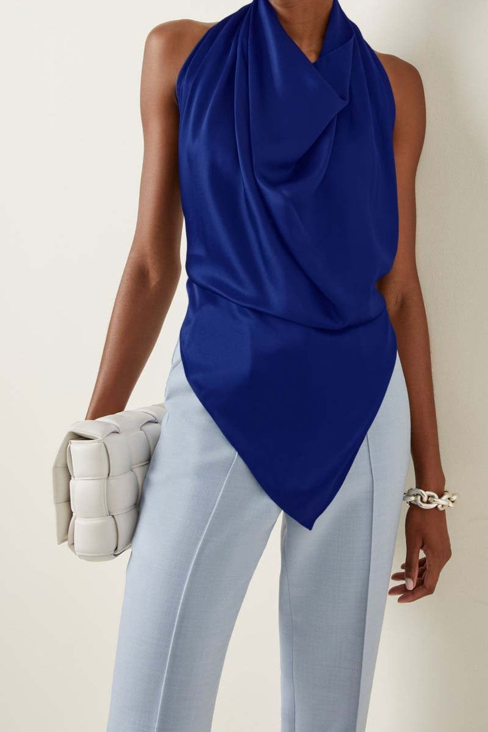 Elevate Your Summer Style with the Materiel Blue Open Back Satin Top
