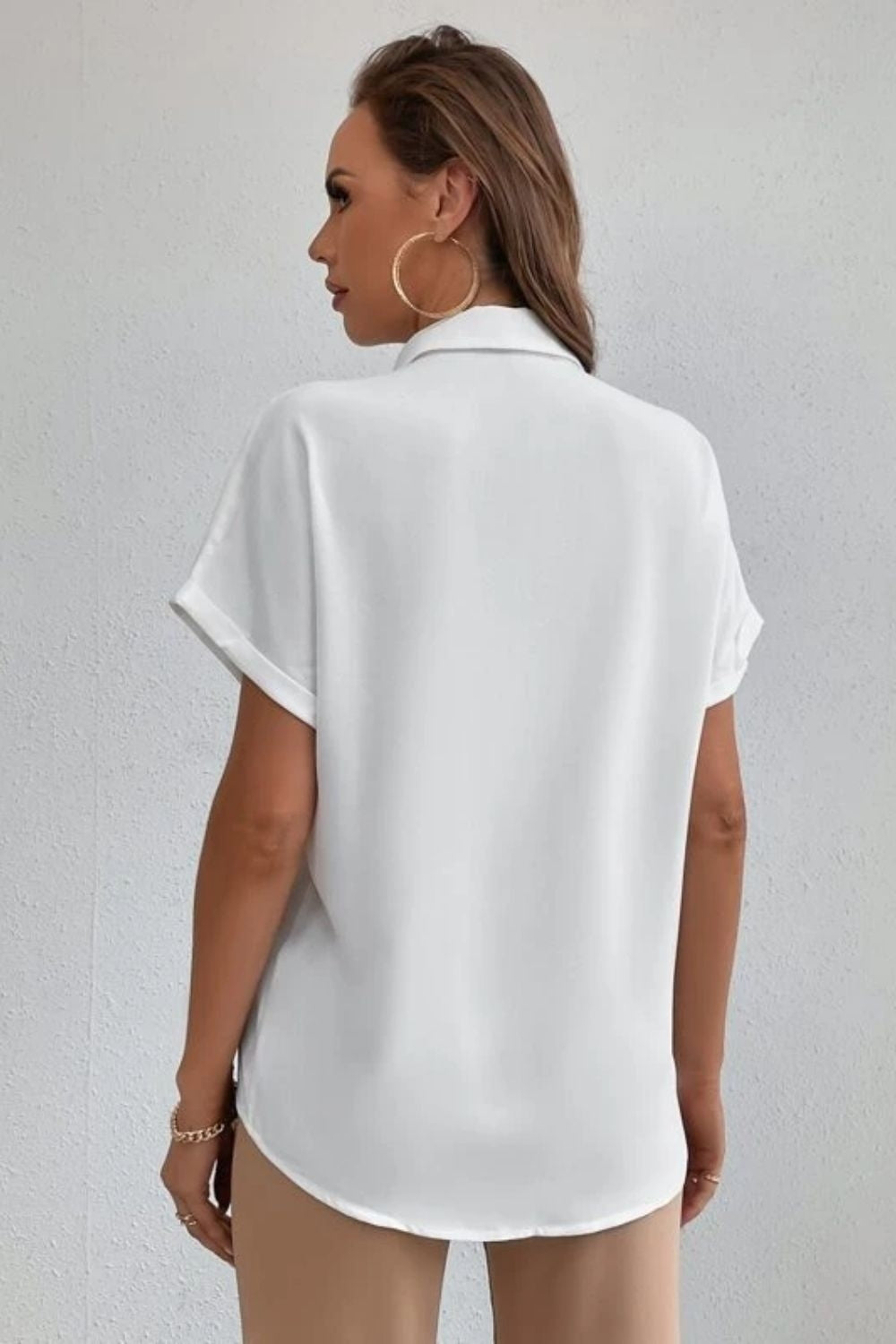 Product Description: The Memories White Top boasts a chic collar neckline that adds a touch of refinement to your look. The short sleeves make it perfect for warm summer days, keeping you cool and stylish. The regular fit ensures a flattering silhouette, allowing you to move with ease while maintaining a polished appearance. The high-quality Rayon fabric not only feels soft against the skin but also drapes beautifully, elevating the overall aesthetic of the top.