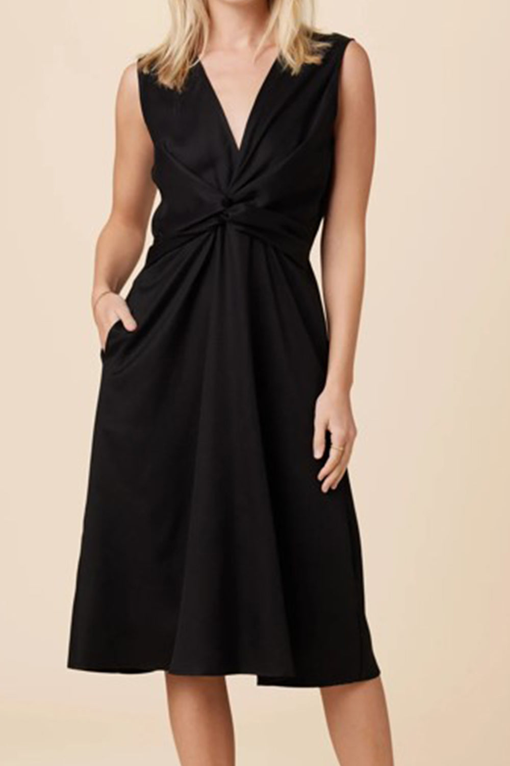 Type-Menemeni Black Dress Color-Black Neck type-V Neck Sleeve Length-Sleeveless Fit-Slim Fabric-Poly Lycra