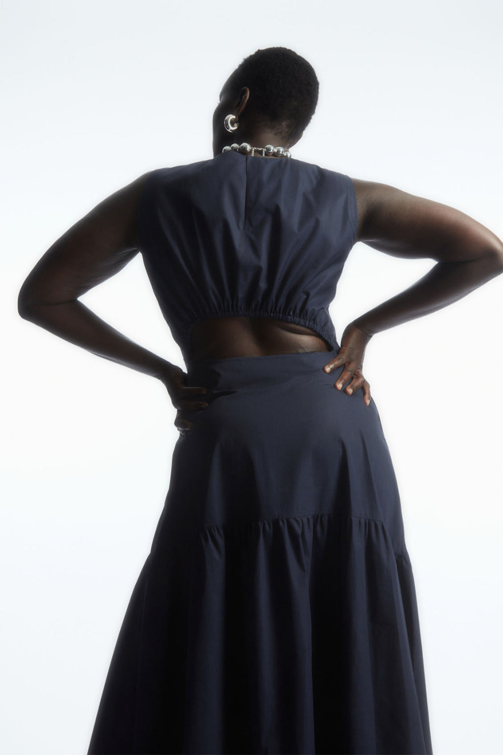 Type-Metamorfosi Black Dress Color-Black Neck type-Close neckline Sleeve Length-Sleeveless Fit-Relaxed Fabric-Poplin