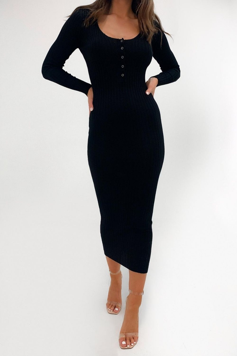 Versatile Footwear: Whether it's strappy sandals for a summer event, ankle boots for a fall outing, or classic pumps for a night on the town, the Midi Bodycon Black Dress pairs effortlessly with a variety of footwear options.