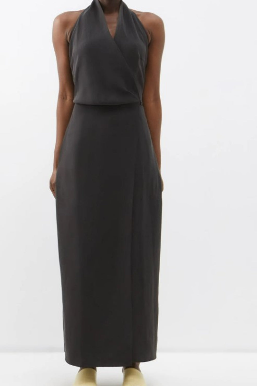 Type-Milyang Black Dress, Color-Black, Neck type-Deep V neck, Sleeve Length-Sleeveless, Fit-Regular, Fabric-Rayon