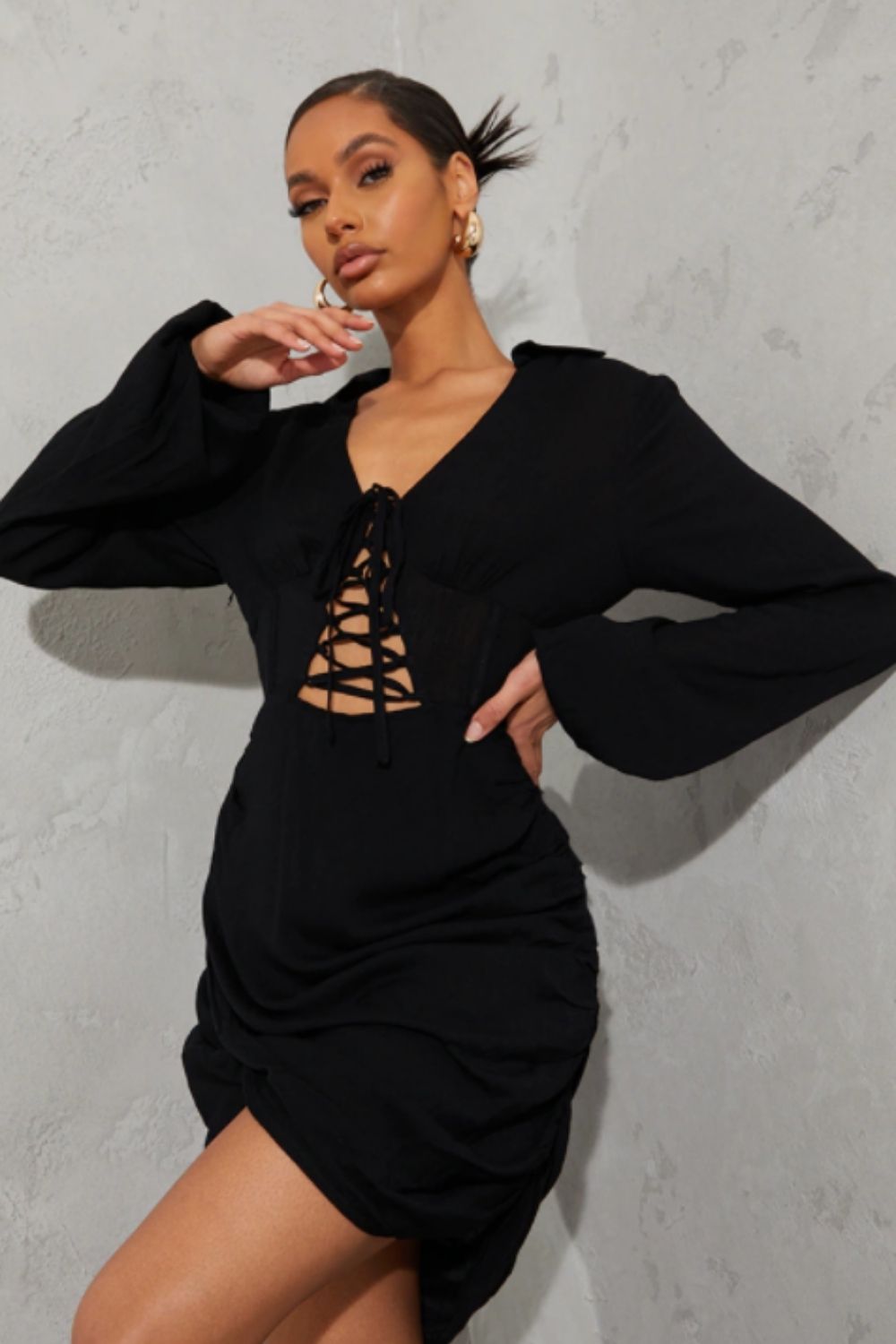 Mini Vneck Black Full Sleeve Dress