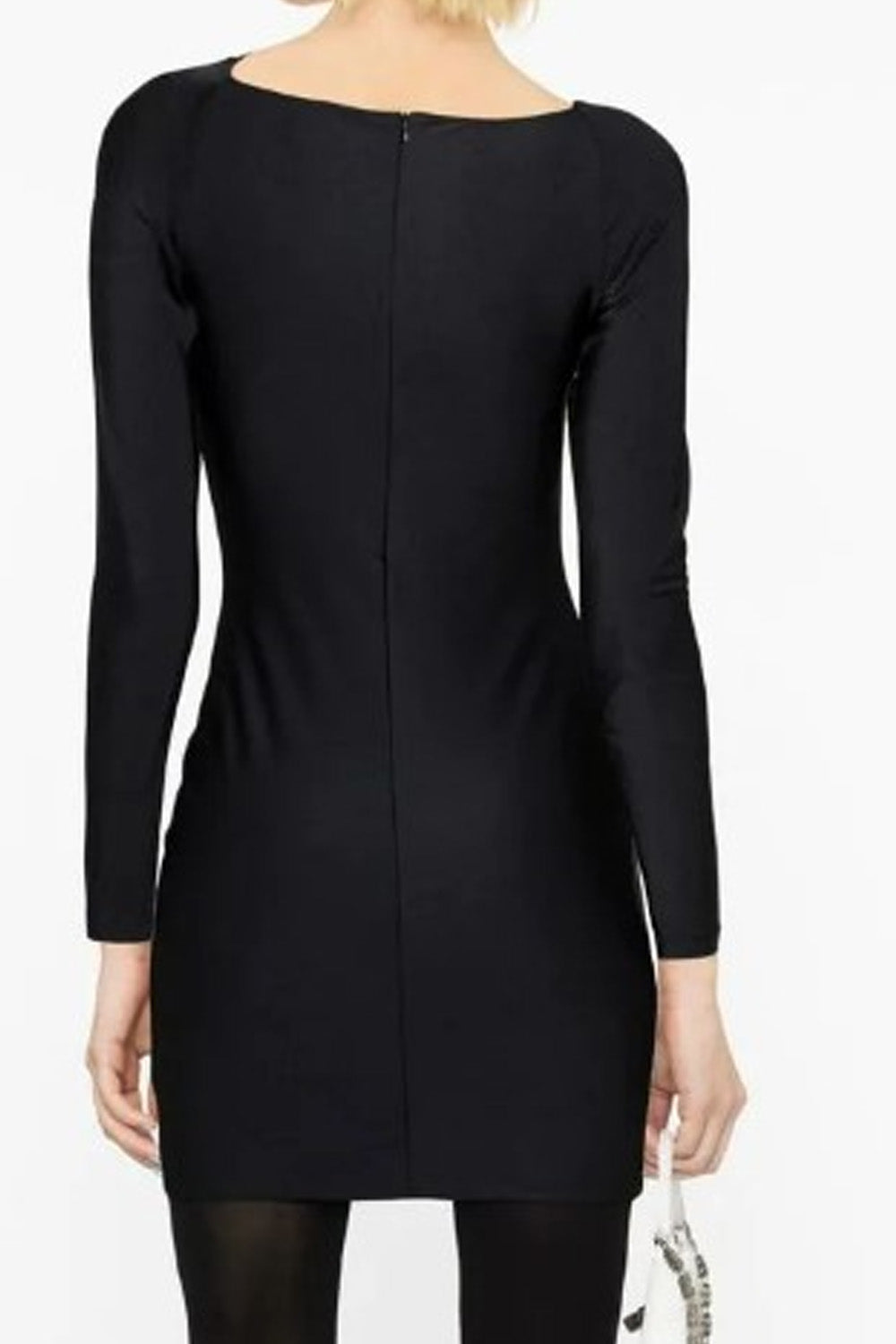 Type-Mirage Black Dress, Color-Black, Neck type-Cut-Out high neck, Sleeve Length-Full sleeve, Fit-Body fit, Fabric-Satin Lycra