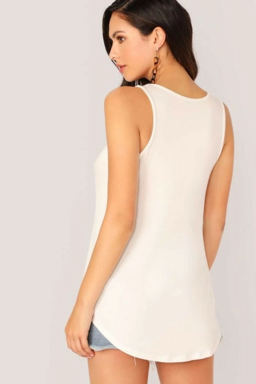 Embrace the endless styling possibilities with the Mirrors White Sleeveless Top, the epitome of comfort and elegance for your summer wardrobe. Elevate your fashion game and let your style shine!