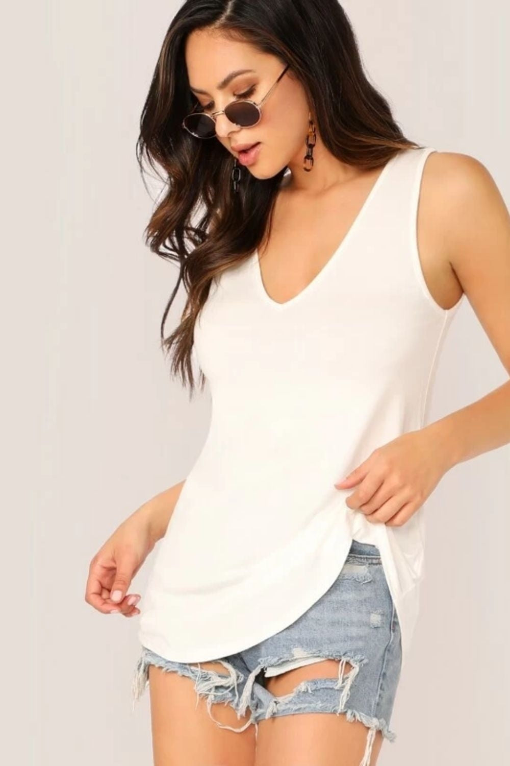 Product Description: The Mirrors White Sleeveless Top is a must-have for fashion-forward individuals seeking a blend of comfort and style. The plunging neckline adds a touch of allure, while the sleeveless design makes it perfect for those warm summer days. The regular fit ensures a flattering look for various body types, making it a wardrobe staple for every fashion enthusiast.