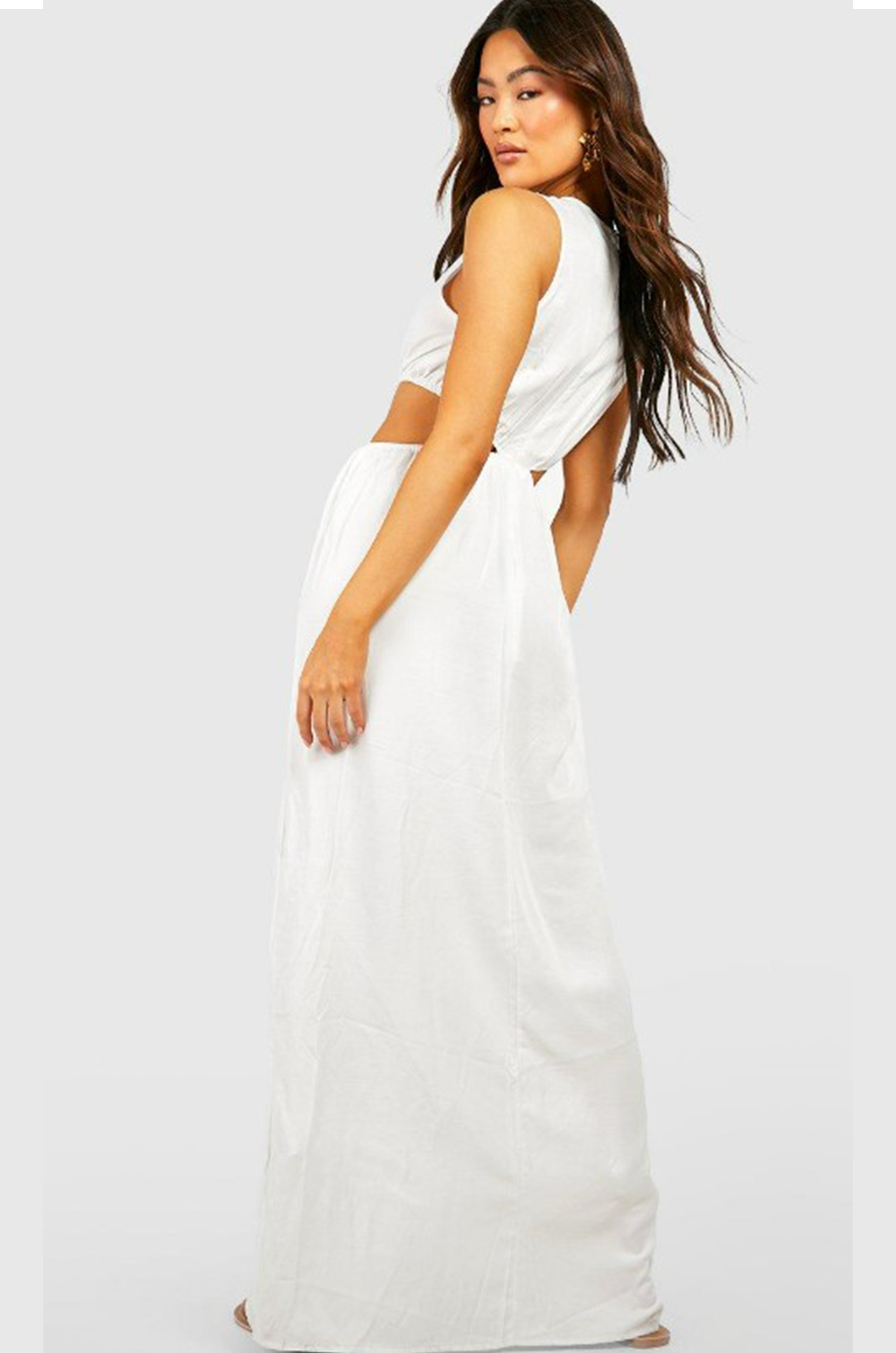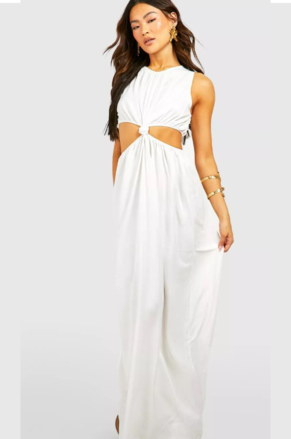 Type-Mirth White Dress, Color-White, Neck type-Round Neck, Sleeve Length-Sleeveless, Fit-Regular, Fabric-Poplin