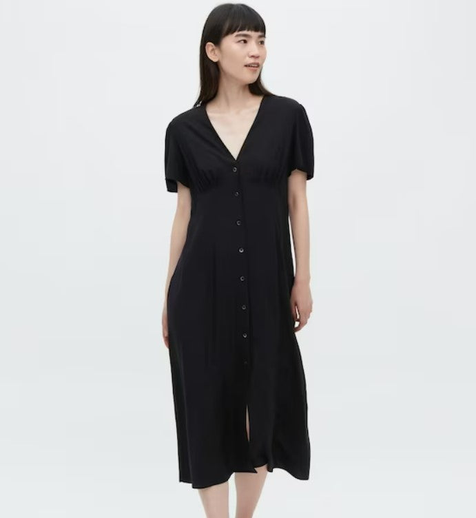 Type-Moscow BlackDress Color-Black Neck type-V Neck Sleeve Length-Half Sleeve Fit-Slim Fabric-Poplin
