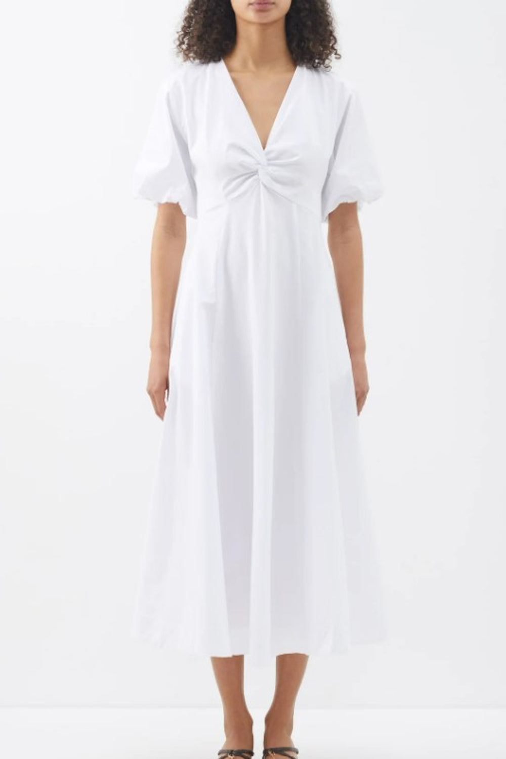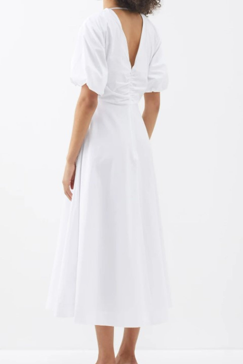 Type-Mungyeong White Dress, Color-White, Neck type-V Neck, Sleeve Length-Half Sleeve, Fit-Regular, Fabric-Poly Lycra