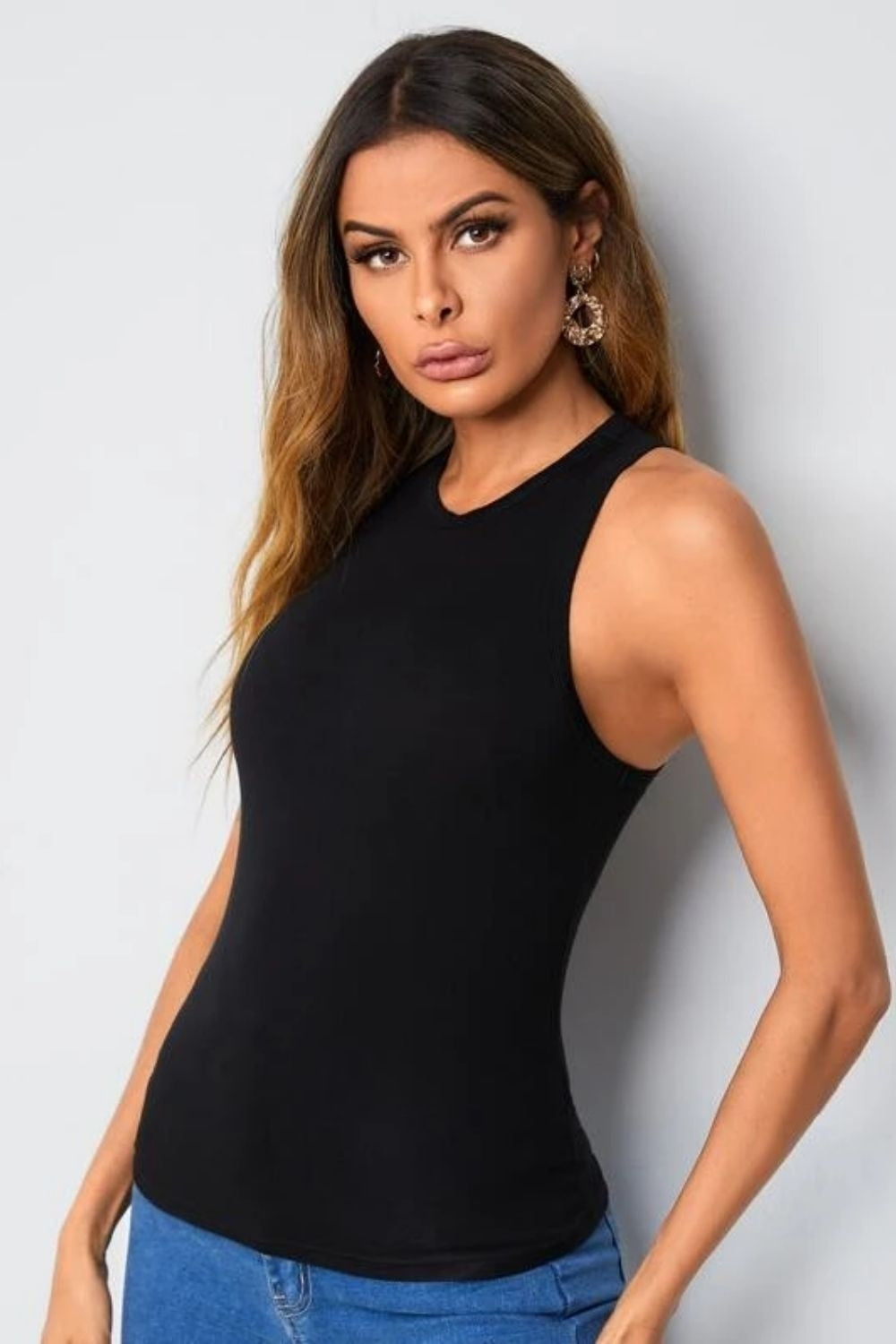 Made from a luxurious blend of high-quality cotton and spandex, this tank top offers a flattering and comfortable fit that hugs your curves in all the right places. The fabric is breathable and lightweight, making it ideal for year-round wear. The classic black color adds a touch of sophistication, ensuring that you can effortlessly elevate any outfit.