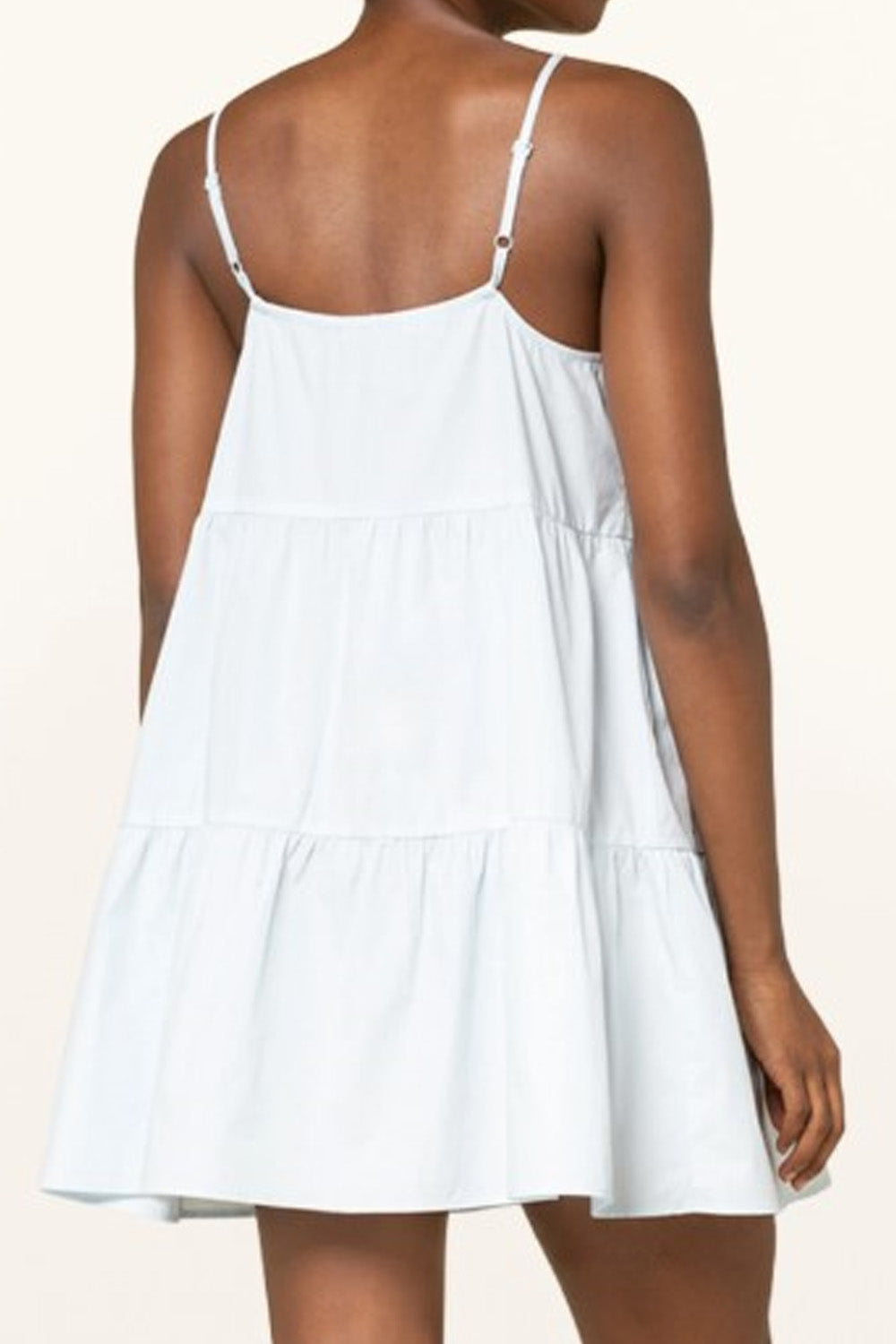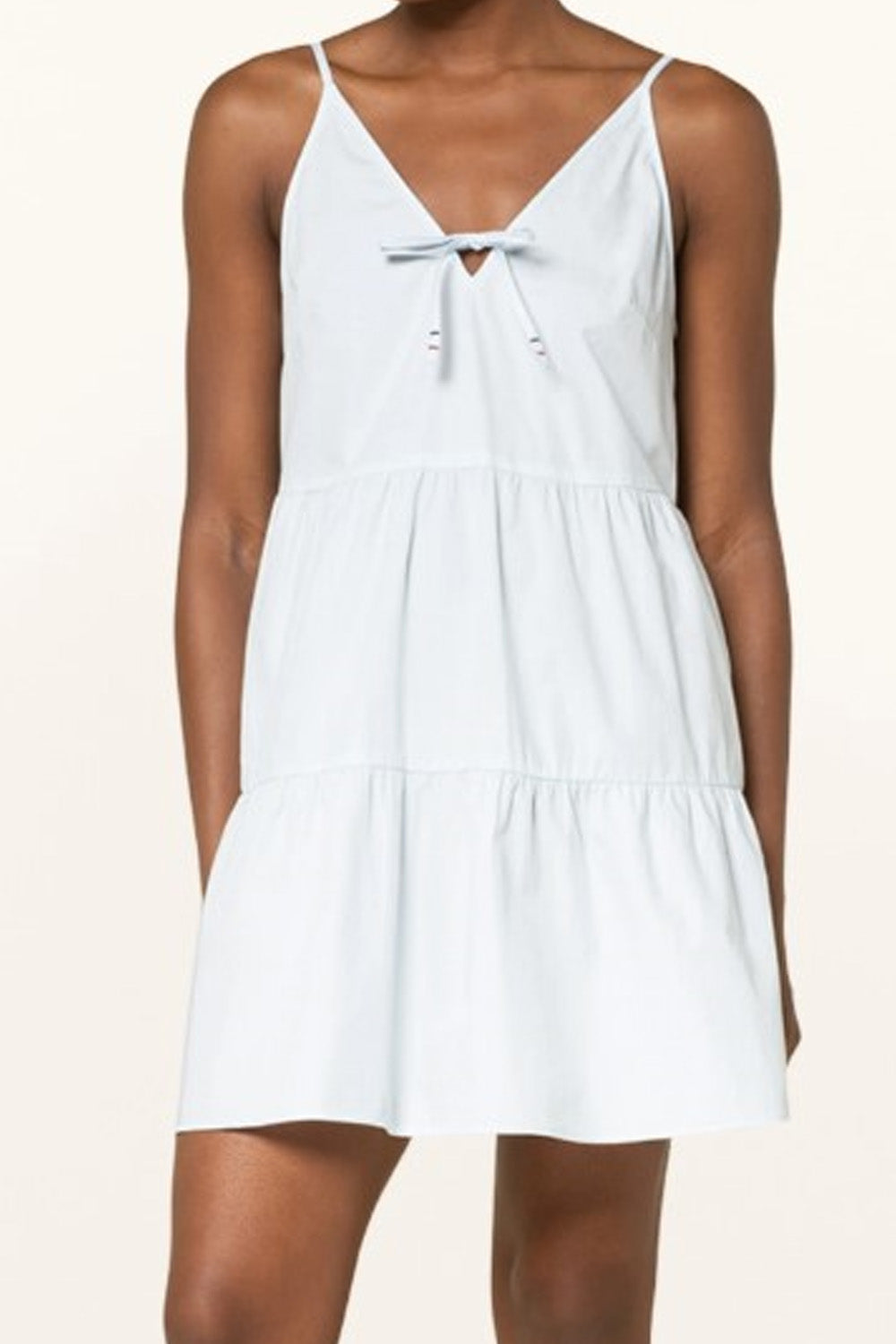 Type-Natural White Dress, Color-White, Neck type-Deep V neck, Sleeve Length-Sleeveless, Fit-Regular, Fabric-Poplin