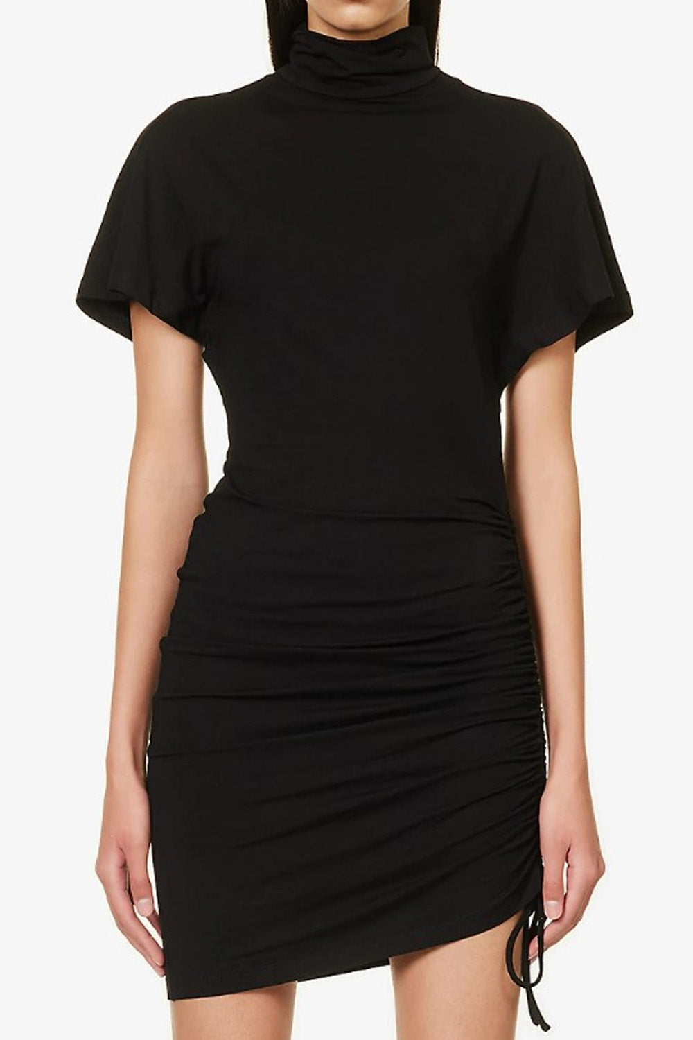 Type-Nebula Black Dress, Color-Black, Neck type-turtle neck, Sleeve Length-Half Sleeve, Fit-Body Fit, Fabric-Poly Lycra
