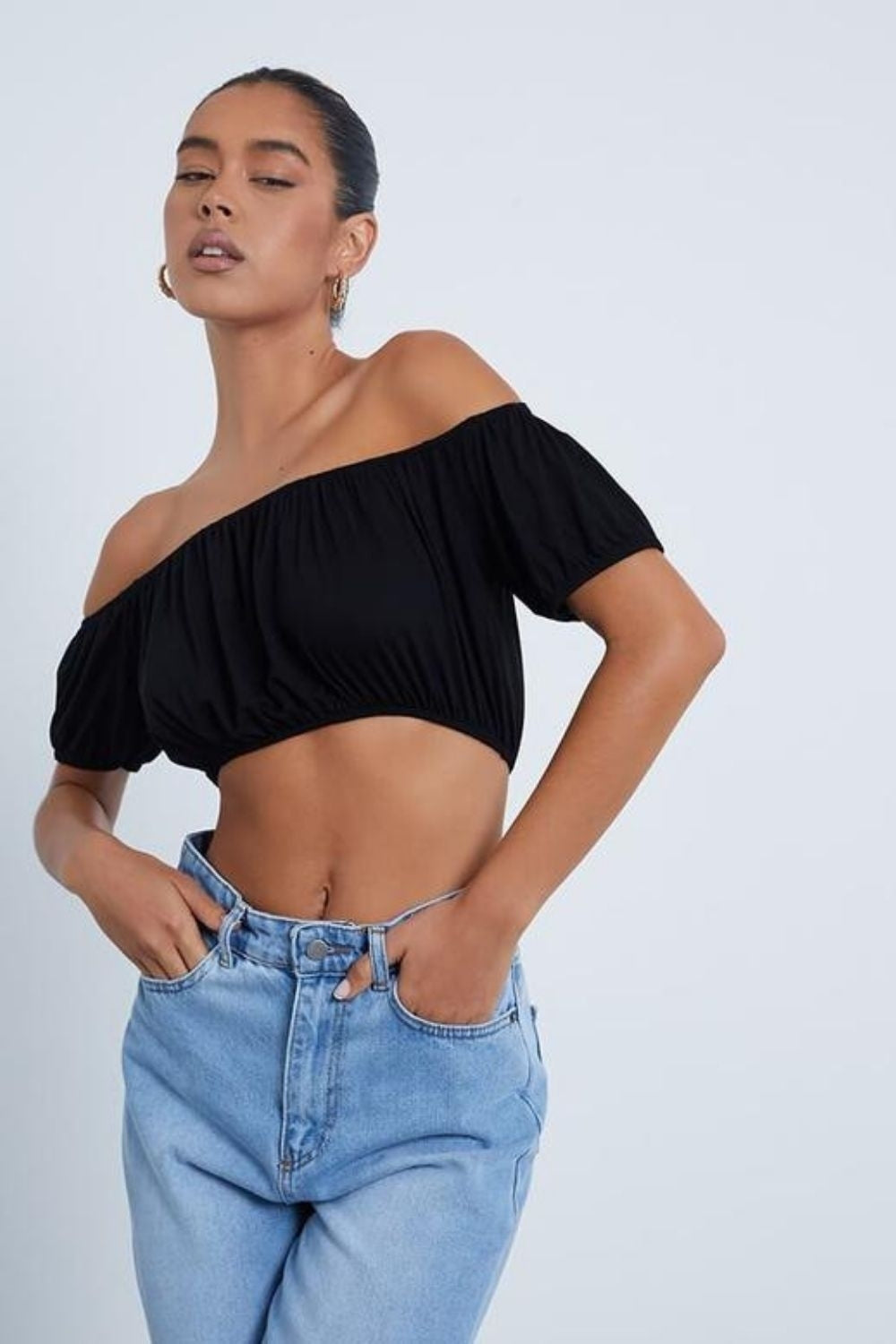 Type- Off Shoulder Black Crop Top