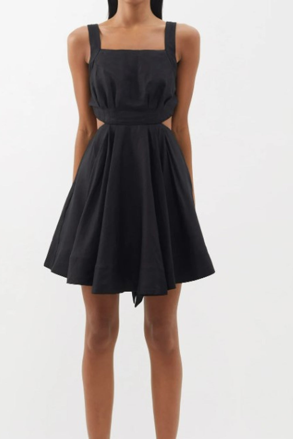 Type-Okcheon Black Dress, Color-Black, Neck type-Square neck, Sleeve Length-Sleeveless, Fit-Regular, Fabric-Poplin