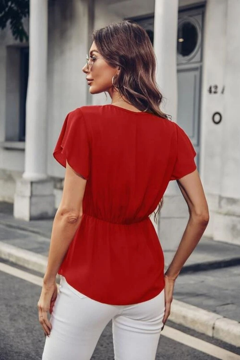 Date Night Glam: Combine the red top with a sleek pencil skirt and strappy heels for a sophisticated and romantic ensemble, ideal for a summer date night.