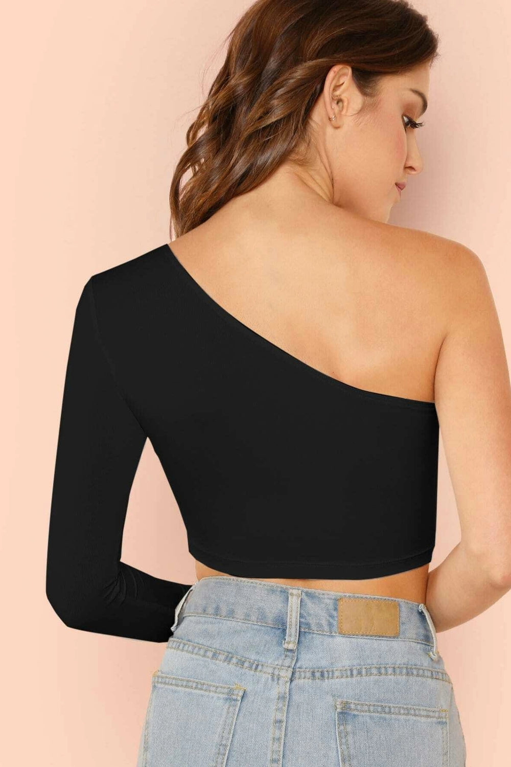 One Shoulder Black Crop Top