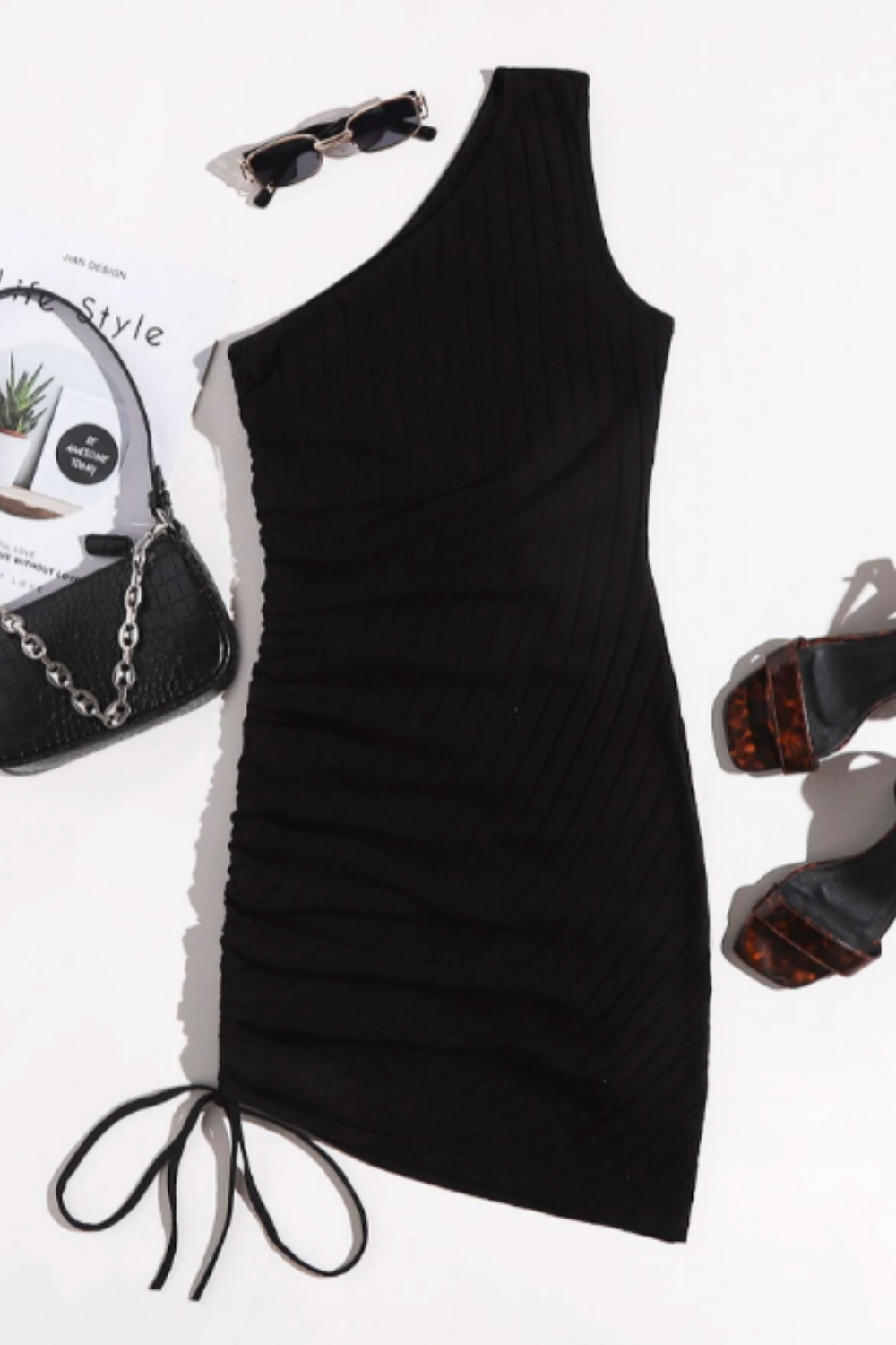 - Type: One Shoulder Drawstring Knot Rouched Dress