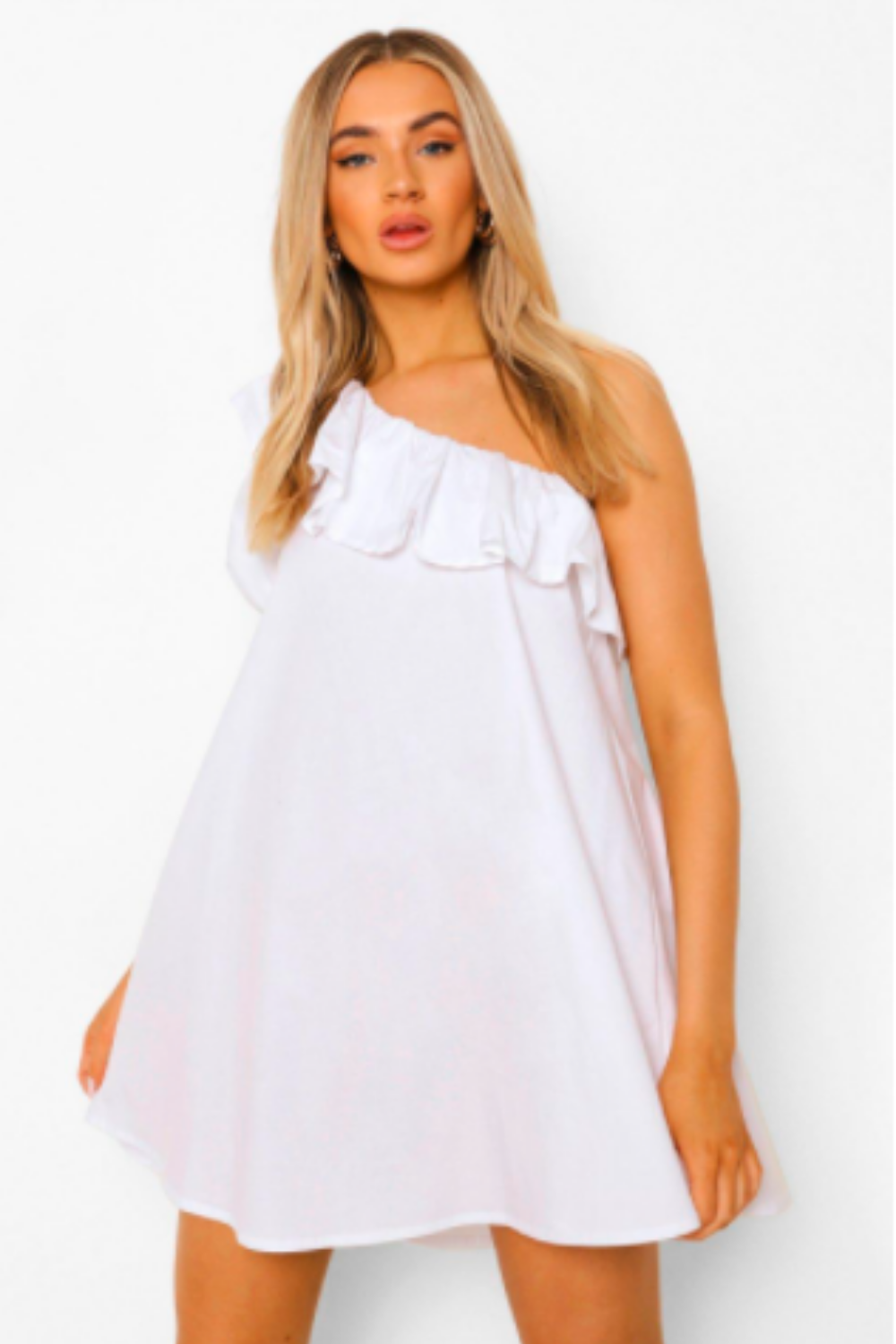 Type- One Shoulder Ruffled Detailed Neck White Dress