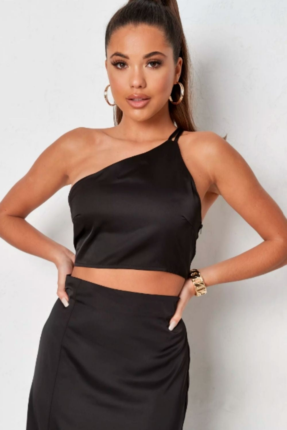 SKU:OneShoulderSatinCropTop-XS