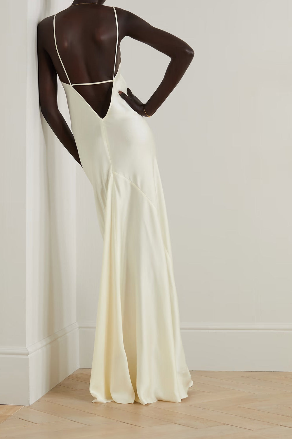 Type-Opulence Off White Dress, Color-White, Neck type-Scoop neck, Sleeve Length-Sleeveless, Fit-Body Fit, Fabric-Satin