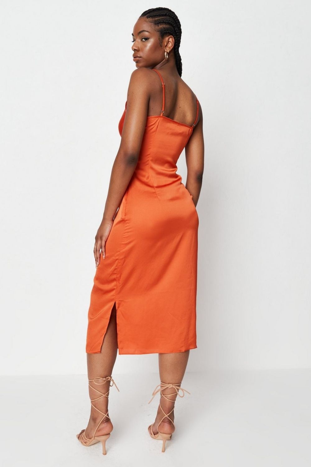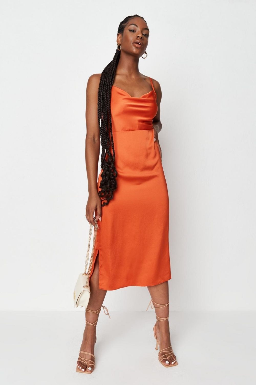 Type- Orange Cowl Neck Dress Up Midi Dress