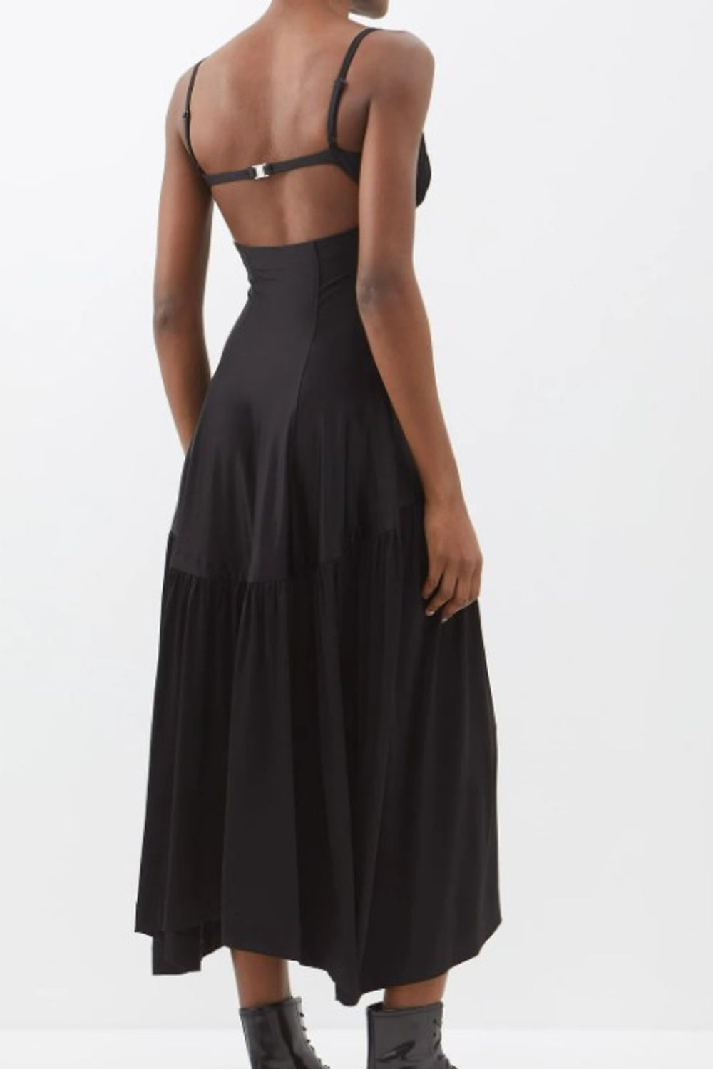 Type-Ottawa Black Dress, Color-Black, Neck type-Square neck, Sleeve Length-Sleeveless, Fit-Regular, Fabric-Poly Lycra