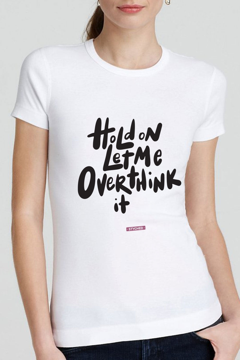 Hold on! Let me overthink it - Quirky Graphic Printed Womens Tee-White