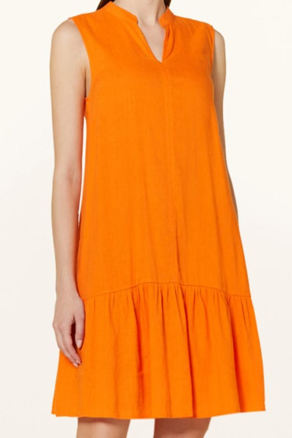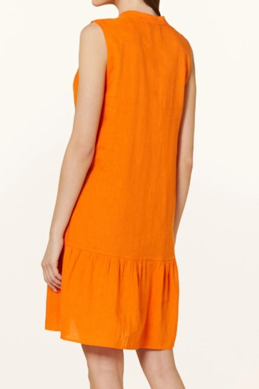 Type-Pastoral Orange Dress, Color-Orange, Neck type-Slit neck with stand-up collar, Sleeve Length-Sleeveless, Fit-Regular, Fabric-Rayon