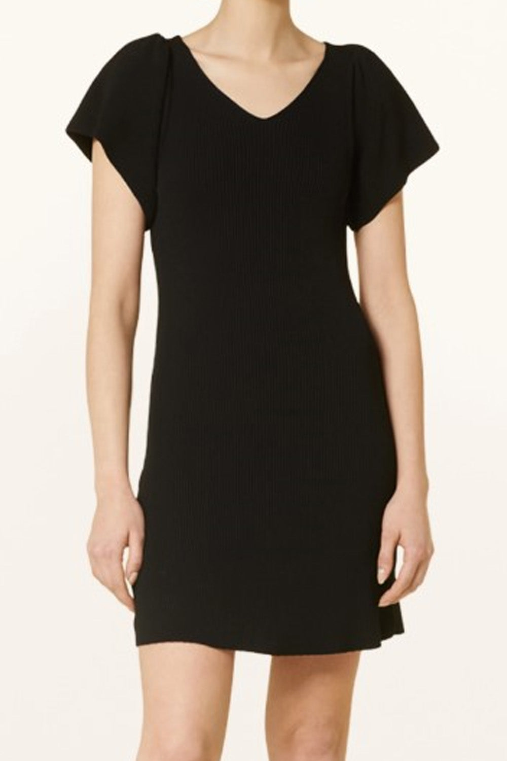 Type-Peals Black Dress, Color-Black, Neck type-V Neckline, Sleeve Length-Half Sleeve, Fit-Relaxed, Fabric-Poly Lycra
