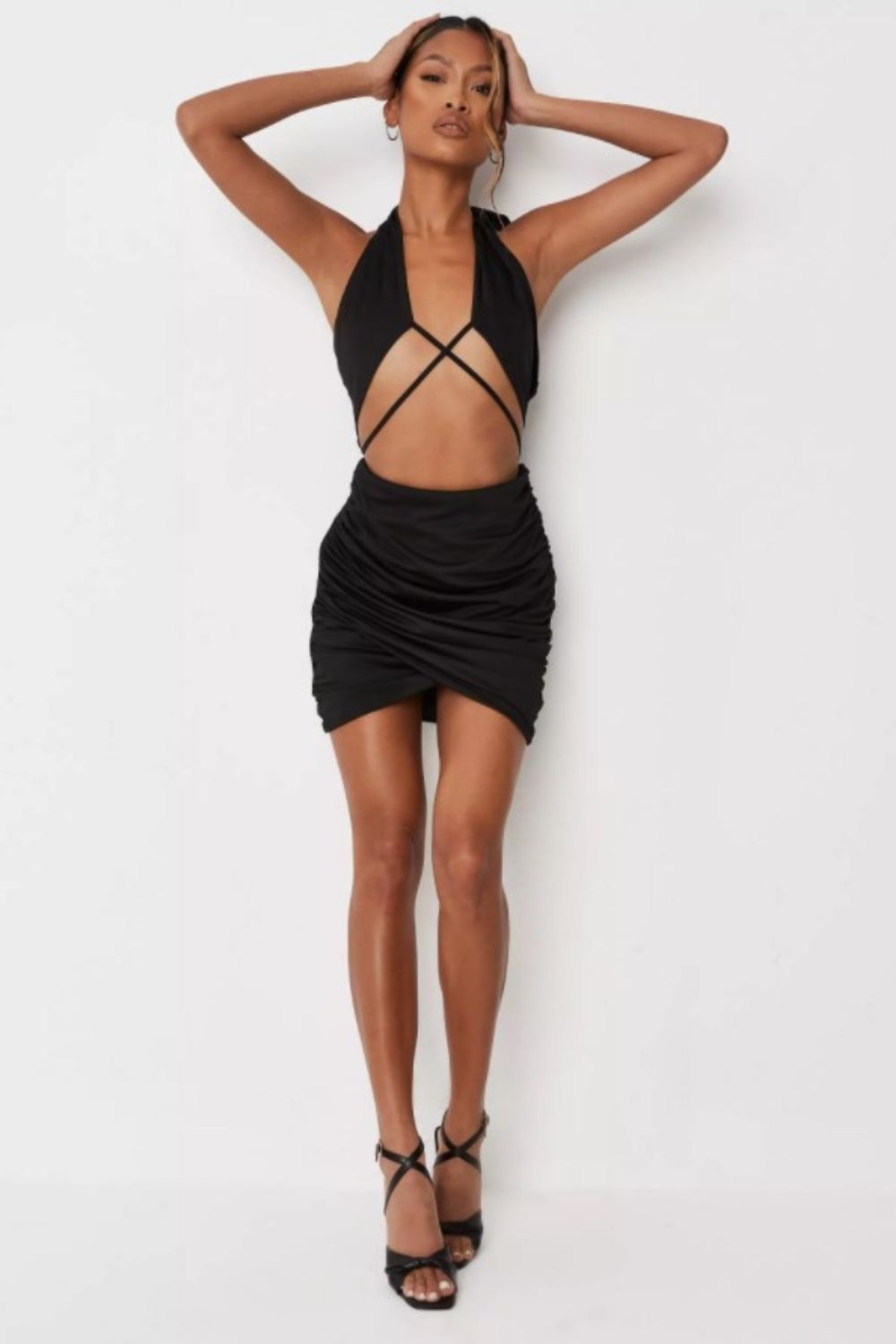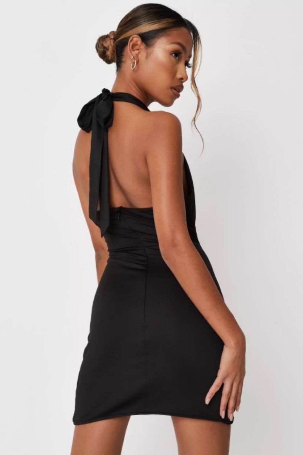 Type - Petite Black Slinky Ruched Halterneck Dress