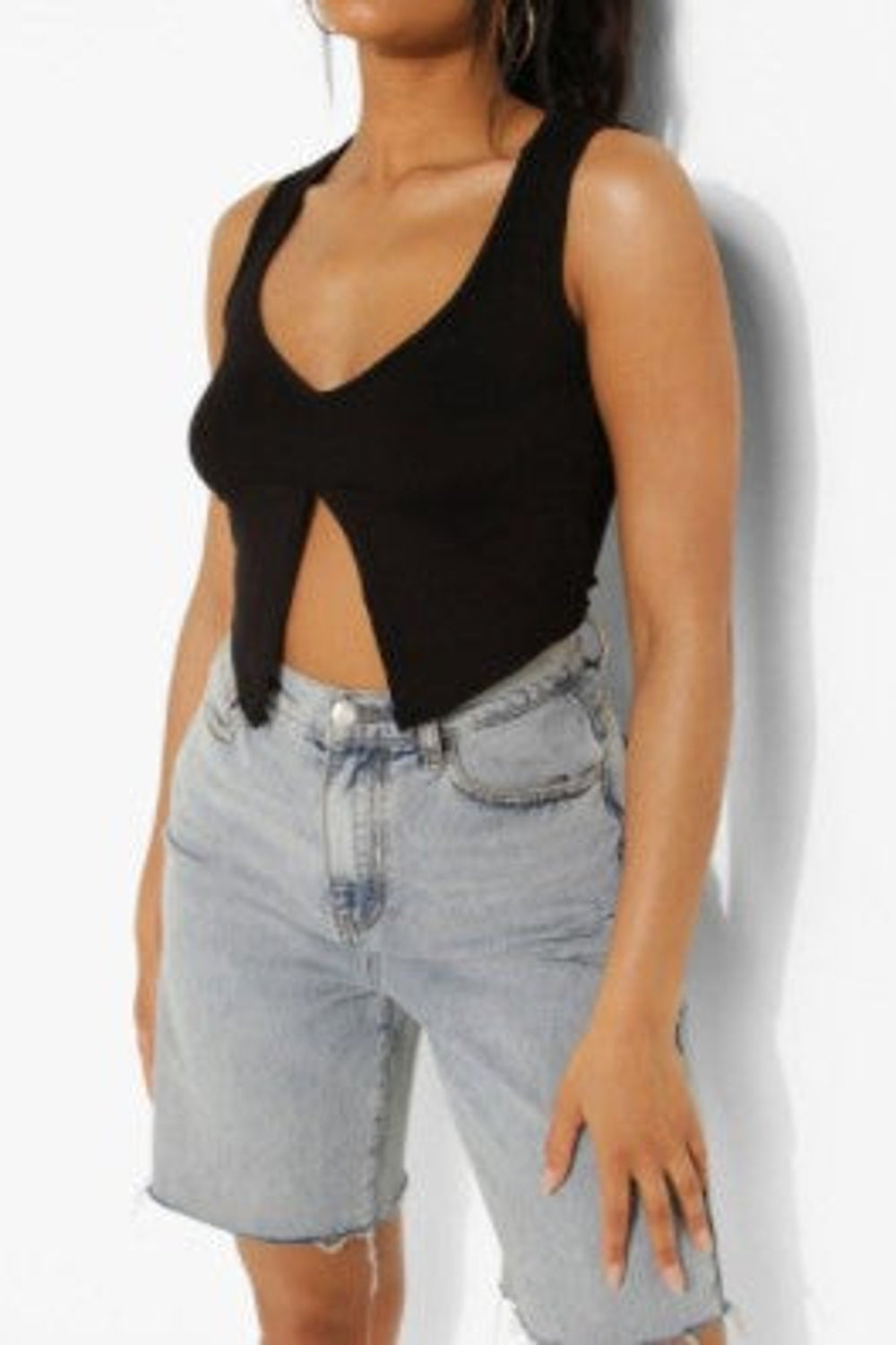 Casual Chic: Pair the Petite Cut Out Crop Top with high-waisted denim shorts and espadrille sandals for a laid-back yet stylish look perfect for brunch with friends or a day of shopping.