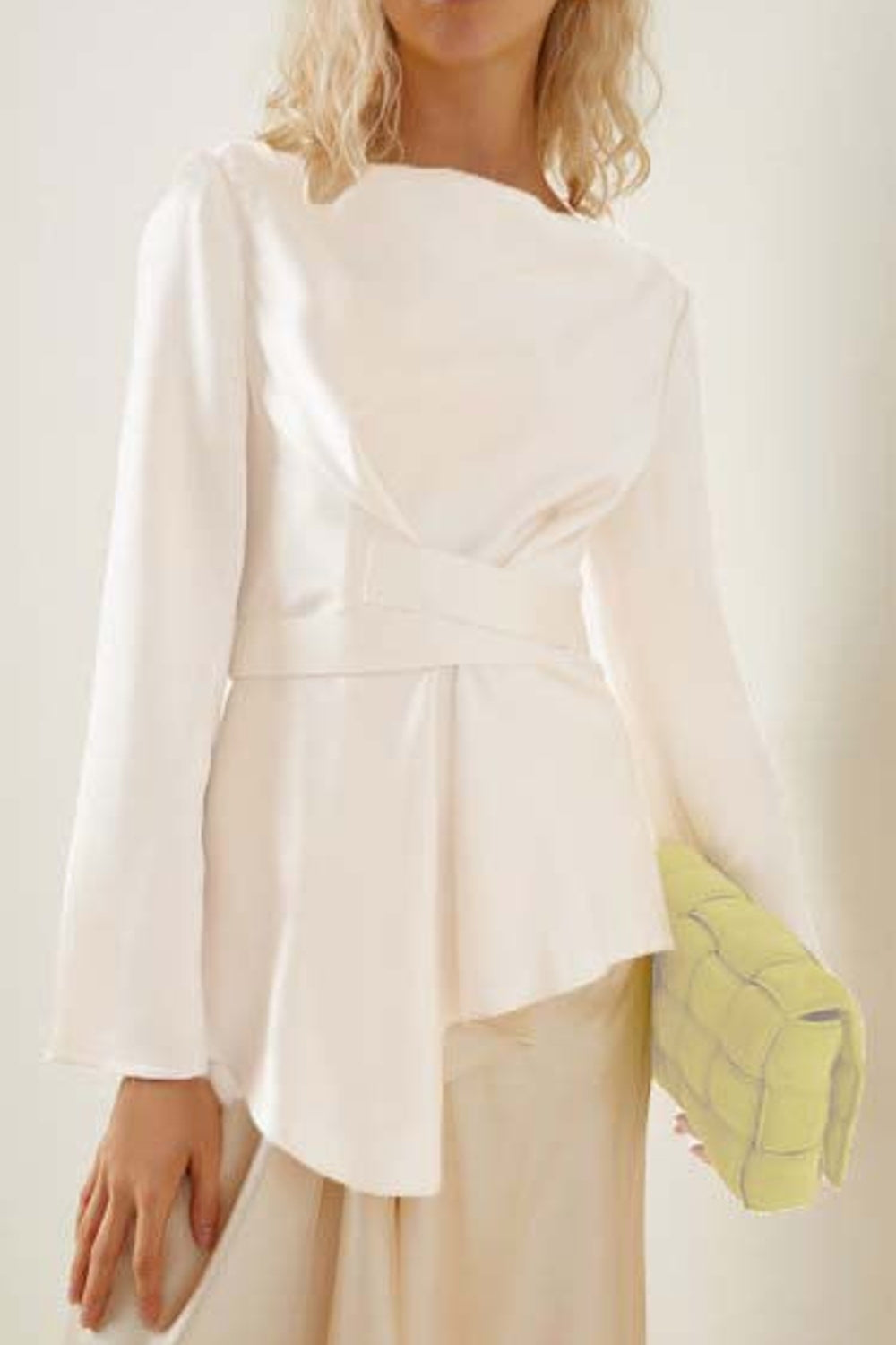 SKU:PetiteWhiteBeltedDrapedSatinTop-XS