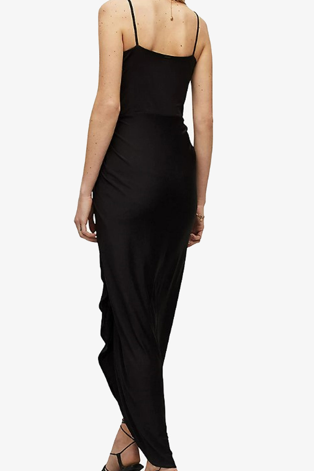 Type-Plethora Black Dress, Color-Black, Neck type-diamond neck, Sleeve Length-Sleeveless, Fit-Regular, Fabric-Poly Lycra