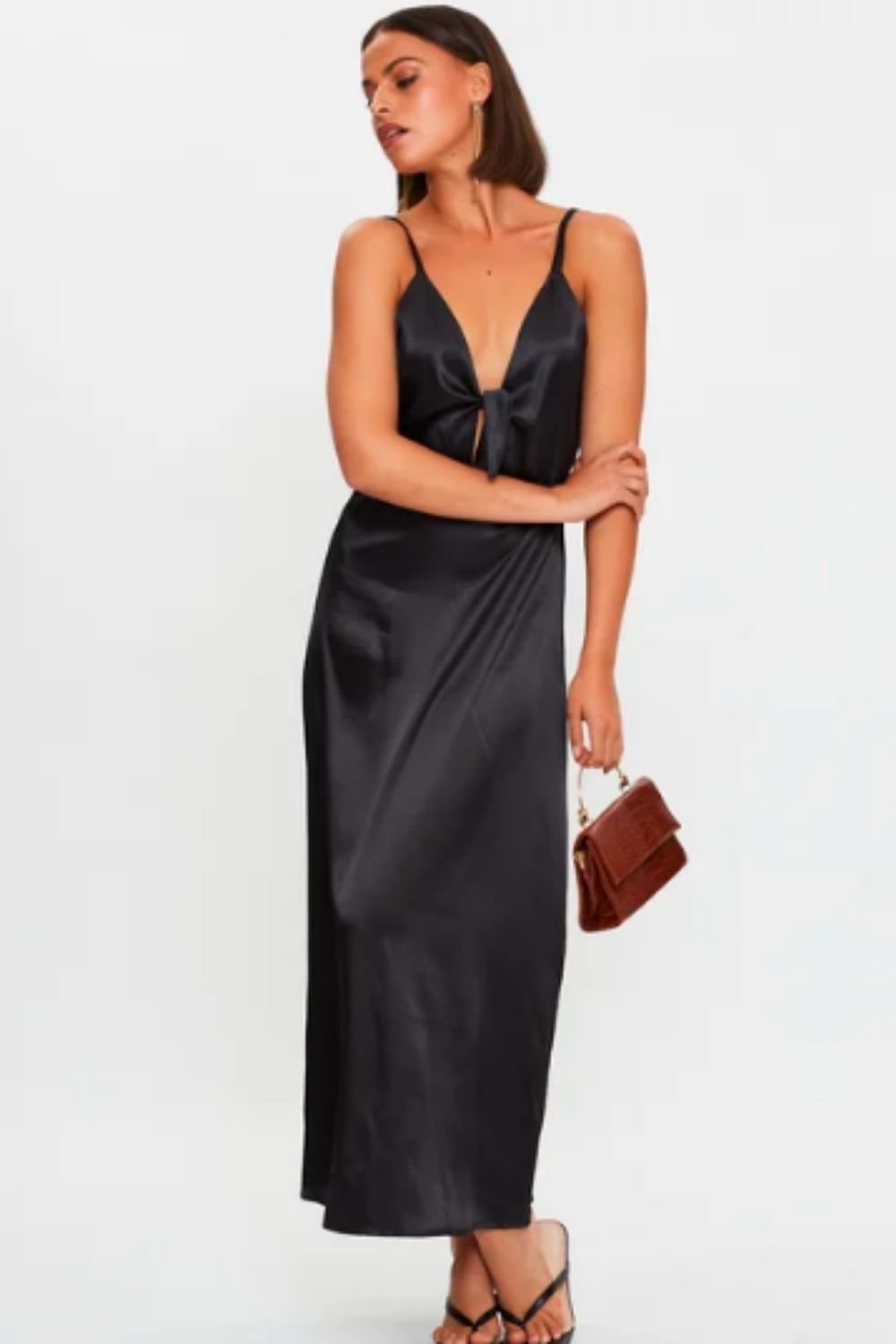 - Type: Plunge Neck Bow Cami Maxi Dress