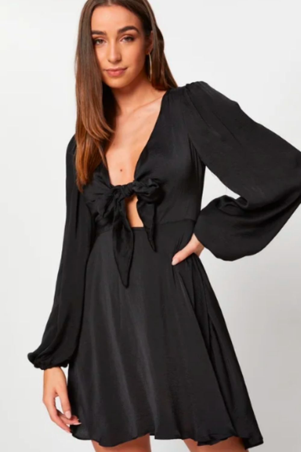 - Type: Plunge Neck Bow Mini Dress
