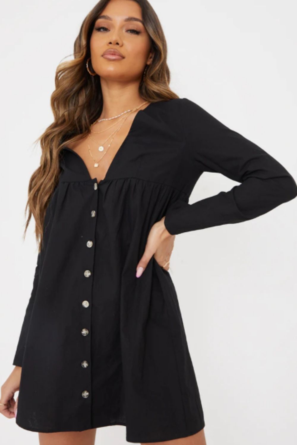 SKU:PlungeNeckMiniRegularDressInBlack-XS