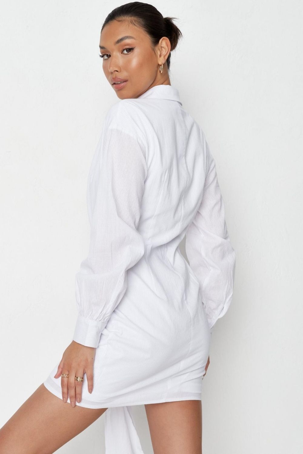 Plunge Neck Tie Knot At Front Waist White Mini Dress