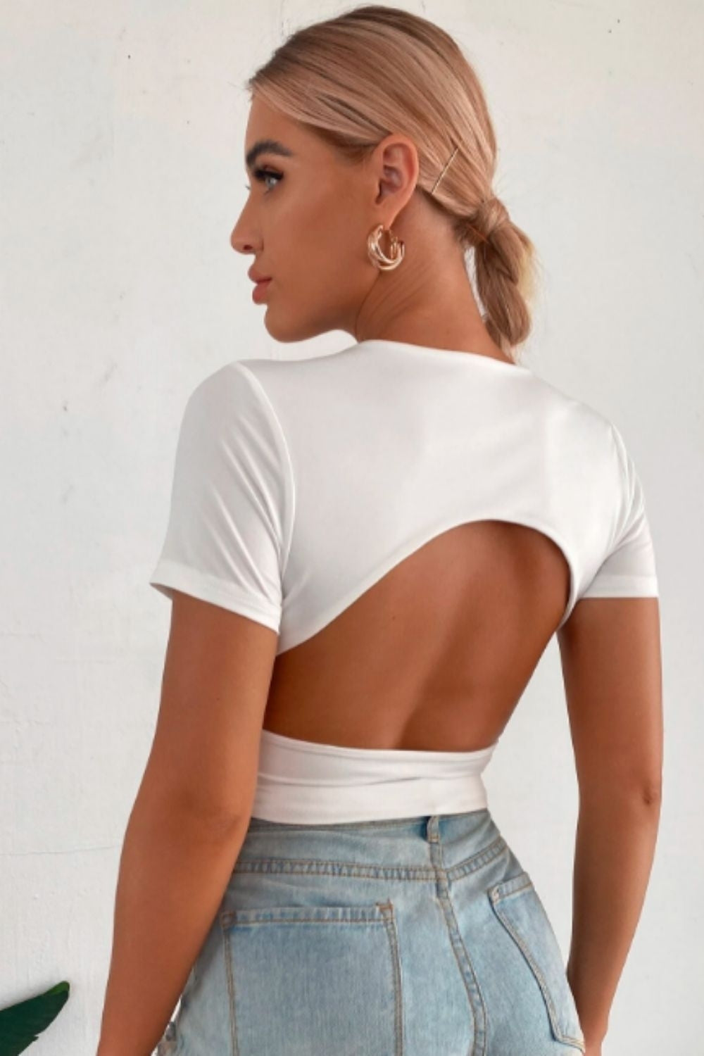 Type-Plunging Neck Twist Front Cut Out Back Tee