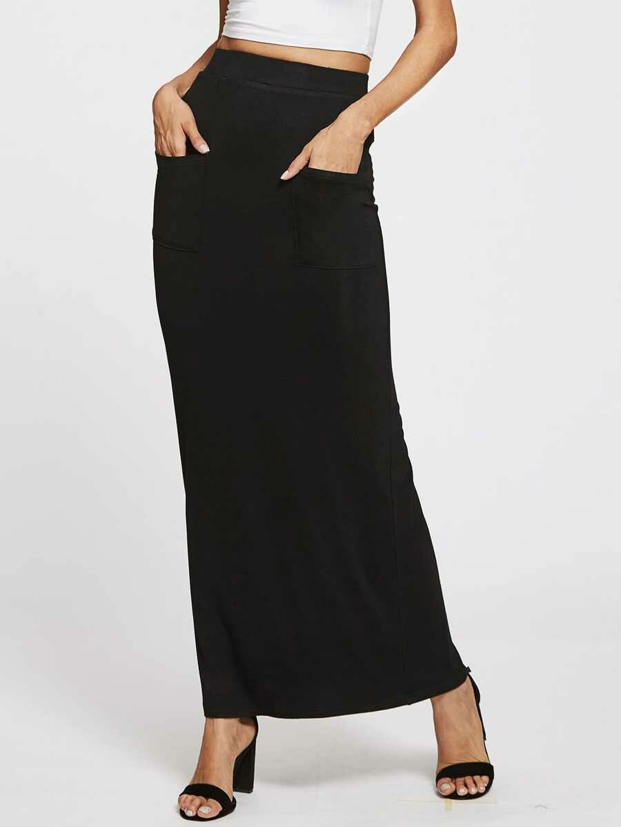 Pockets Front Sheath Skirt