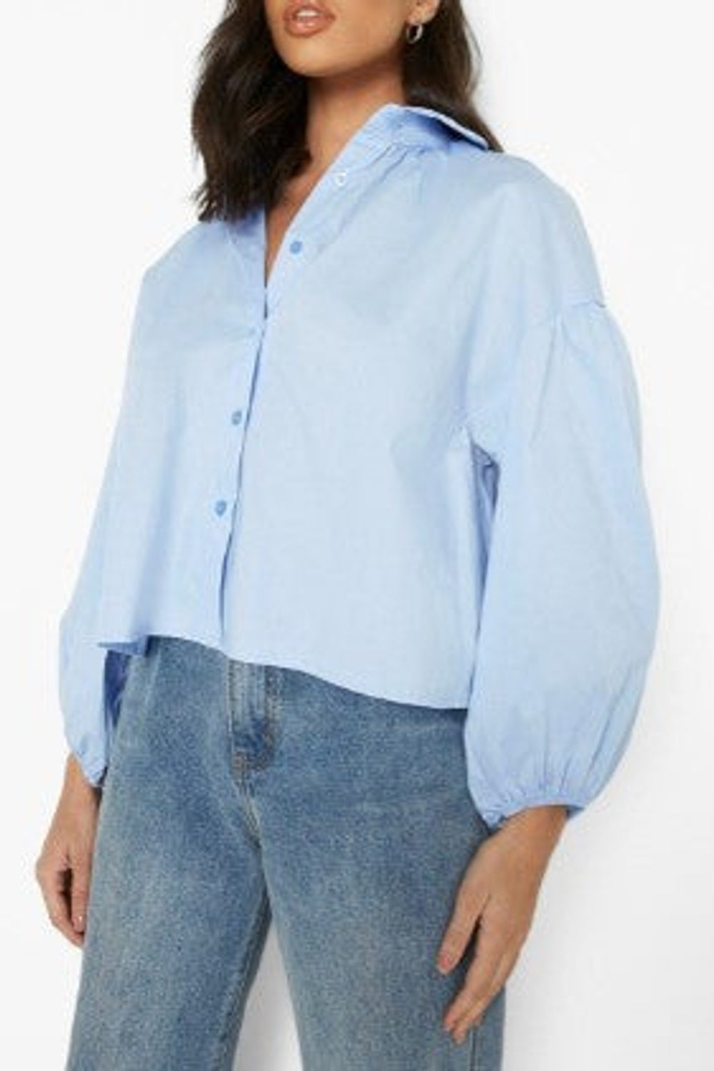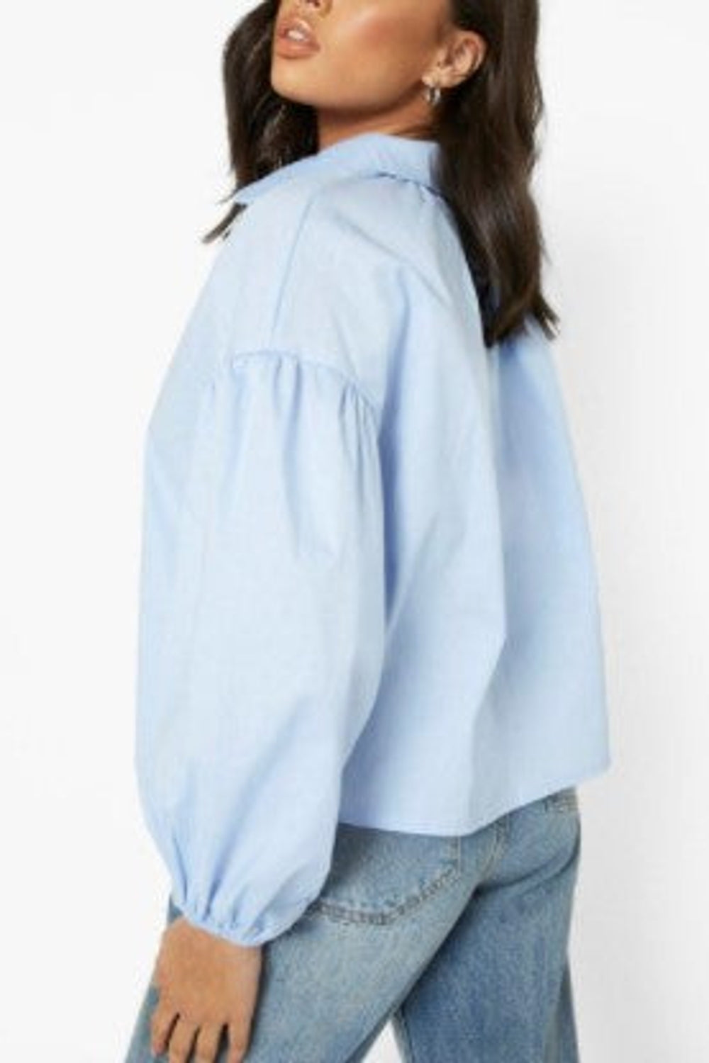 Powder Blue Blue Boxy Volume Sleeve Shirt