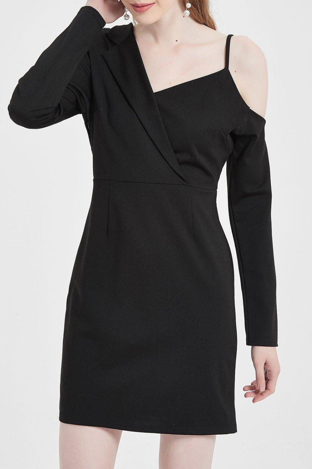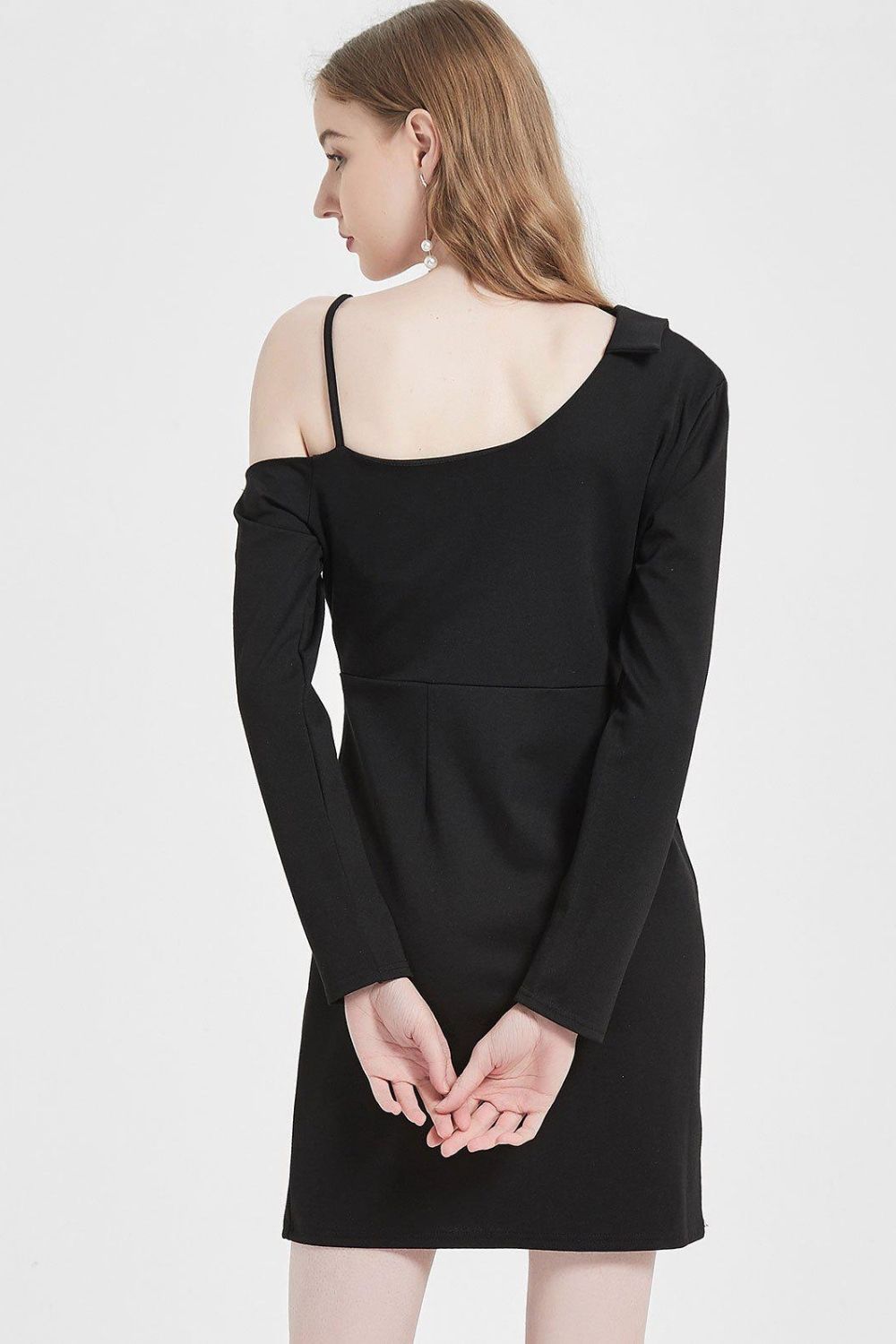 SKU:PrettyAsymmetricShoulderFullSleeveDress-XS