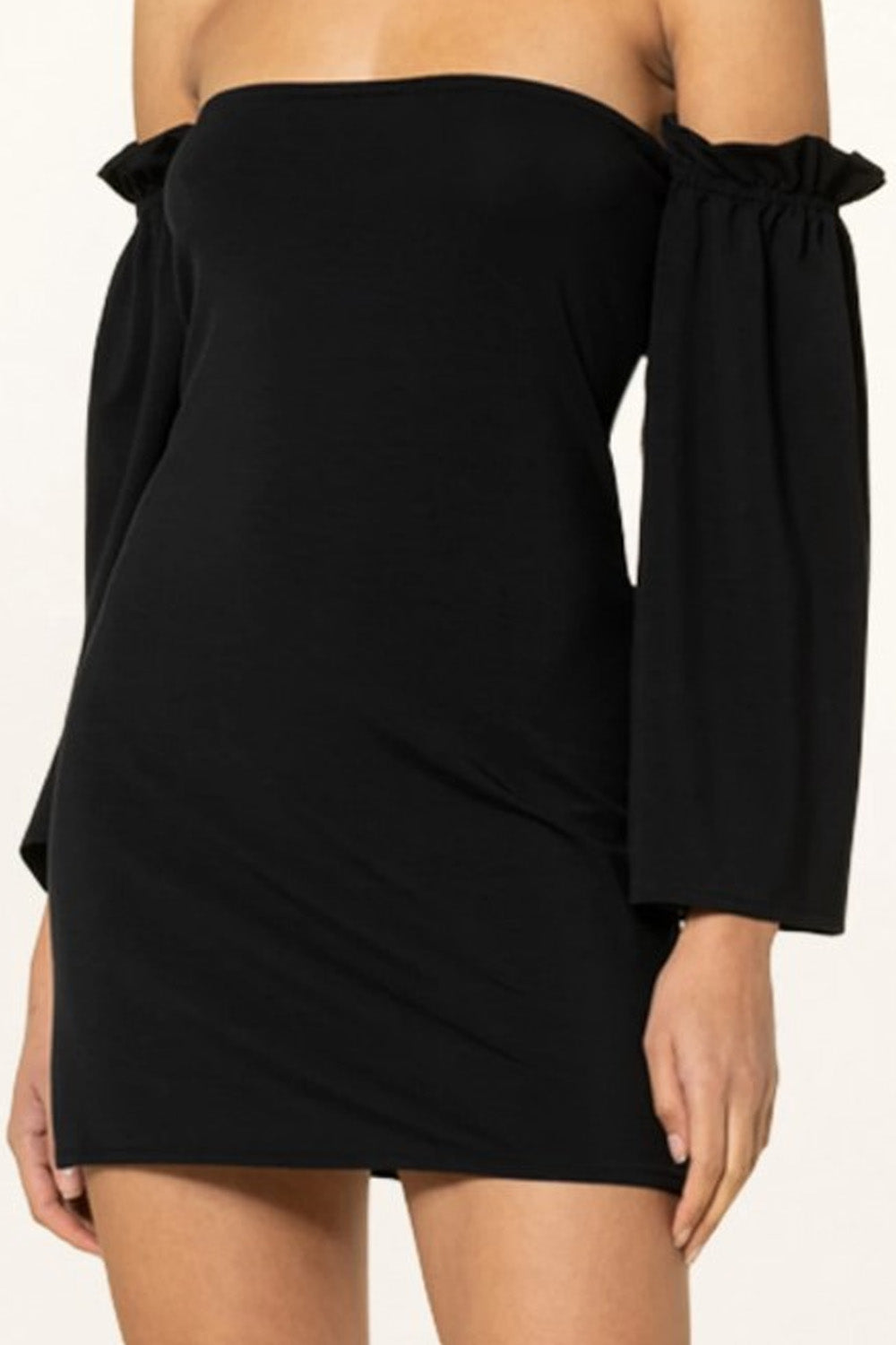 Type-Primitive Black Dress, Color-Black, Neck type-Off- shoulder neckline, Sleeve Length-full length, Fit-Body Fit, Fabric-Poly Lycra