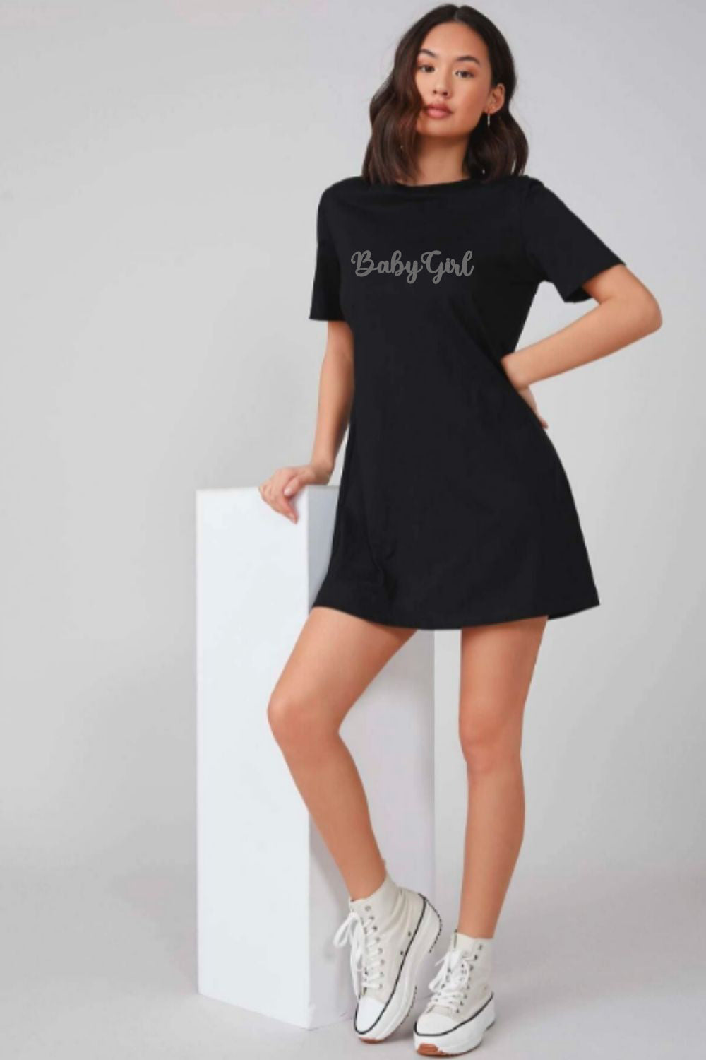 Get ready to capture those precious moments in style with our Baby Girl Graphic Printed Black Solid T-shirt Dress. It's more than just a dress; it's a fashion-forward statement for you.