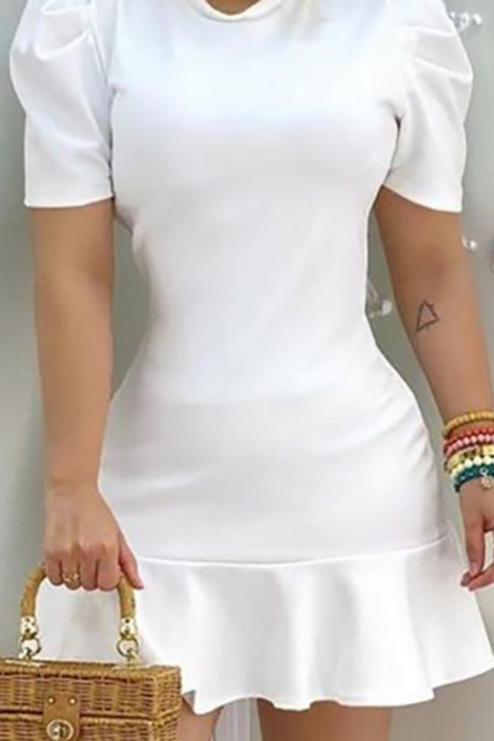 Puff Short Sleeve High Neck Ruffles Casual Dress