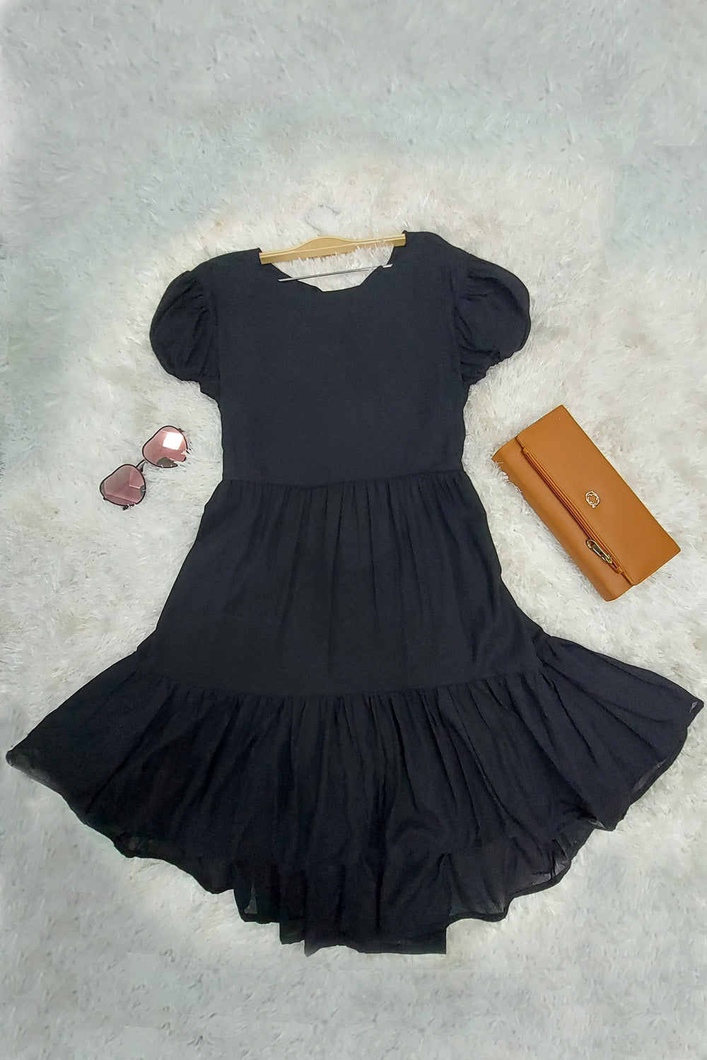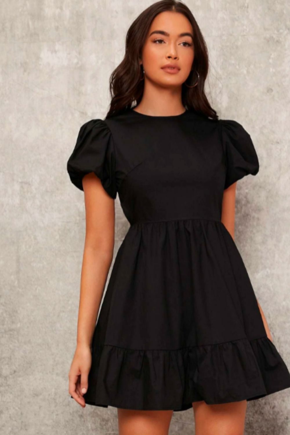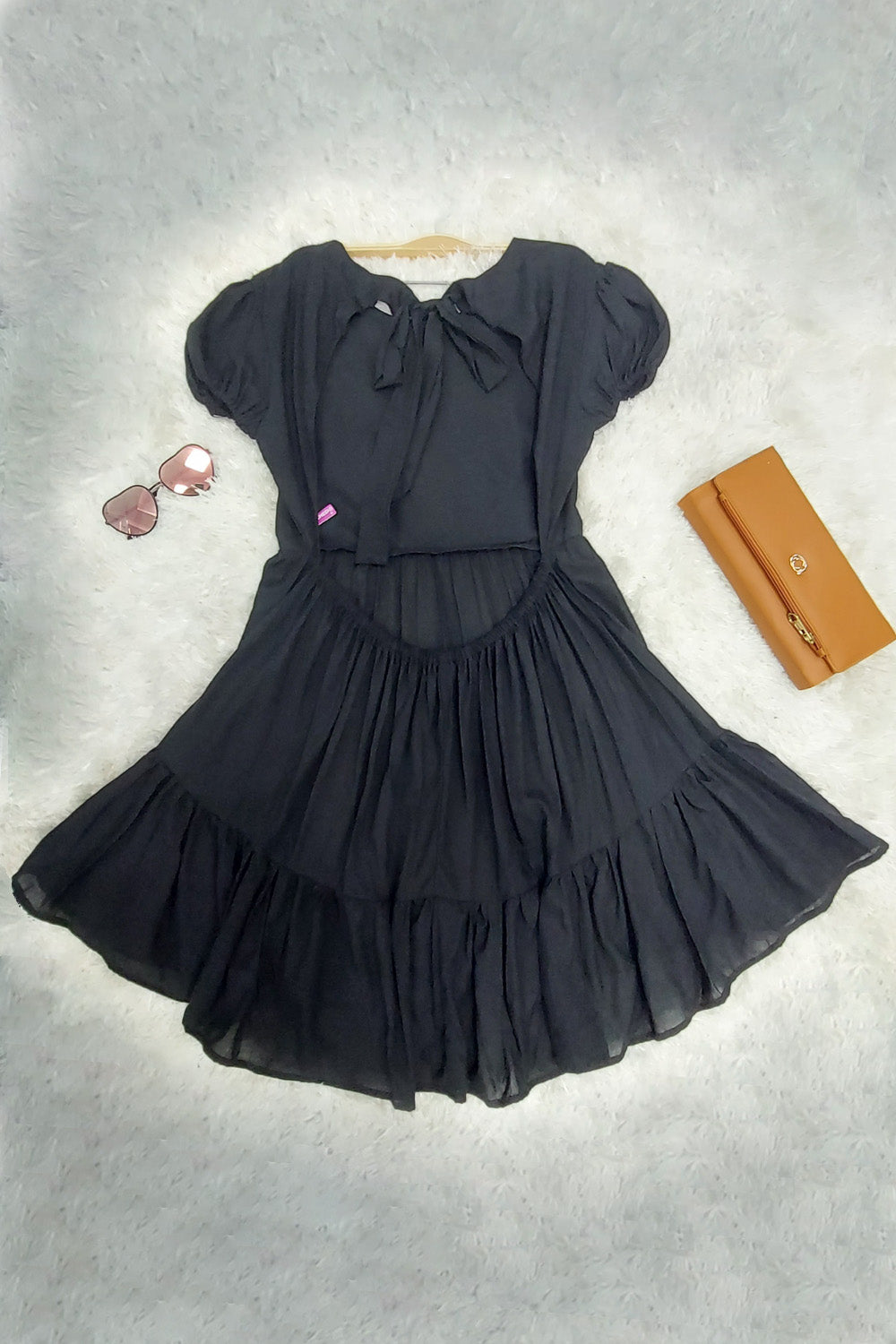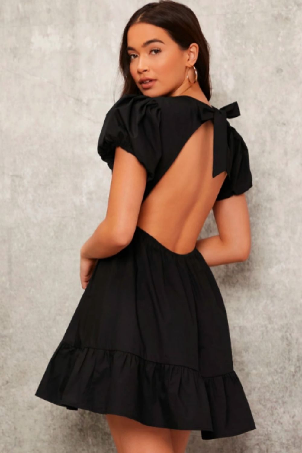 - Type: Puff Sleeve Ruffle Hem Bow Backless Dress